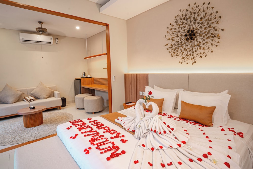 The Sakaye Luxury Villas & Spa ligger i Legian (i området Dewi Sri), fem minuter med bil från både Legians strand och Kuta Beach. Denna villa med spa ligger 2,9 km från Seminyak Beach och 12,2 km från Sanur Beach. Känn dig som hemma i ett av de 29 luftkonditionerade rummen med privata pooler och privata bubbelpooler. Privat pentry gör det enkelt för dig att laga mat när du vill. Gratis wi-fi ser till att du kan hålla dig uppkopplad, och en 42-tums LED-tv med premium-kanaler erbjuder all underhållning du behöver. Privat badrum med dush över badkar, djupa badkar och gratis toalettartiklar. Avstånd avrundas till närmsta decimal.