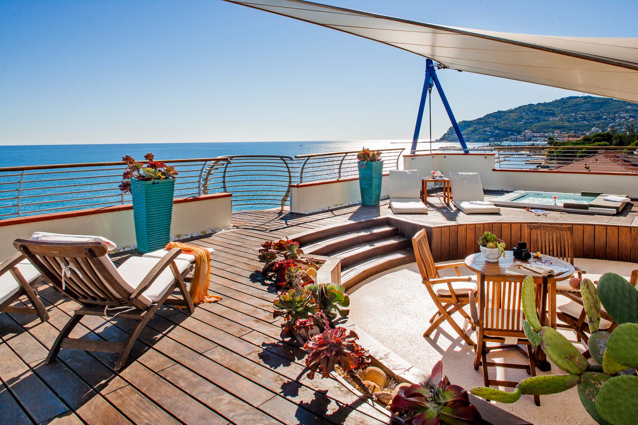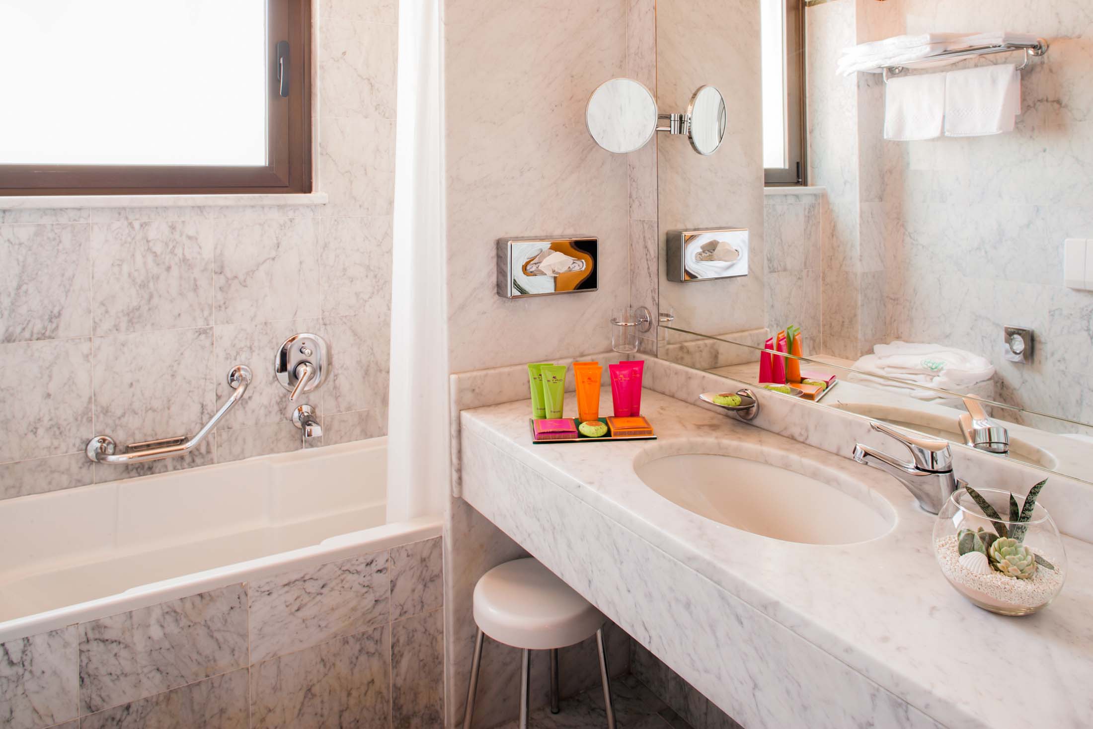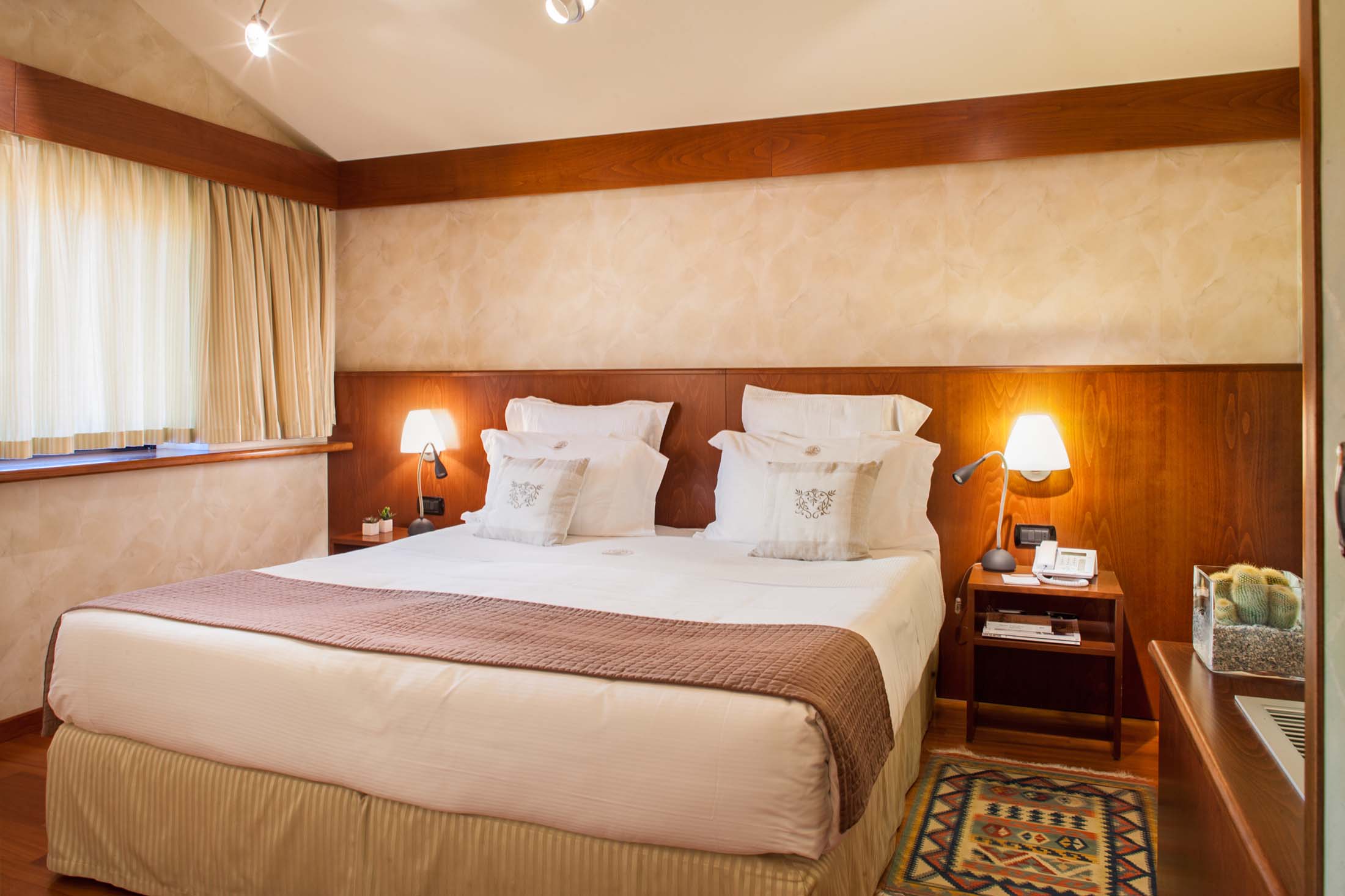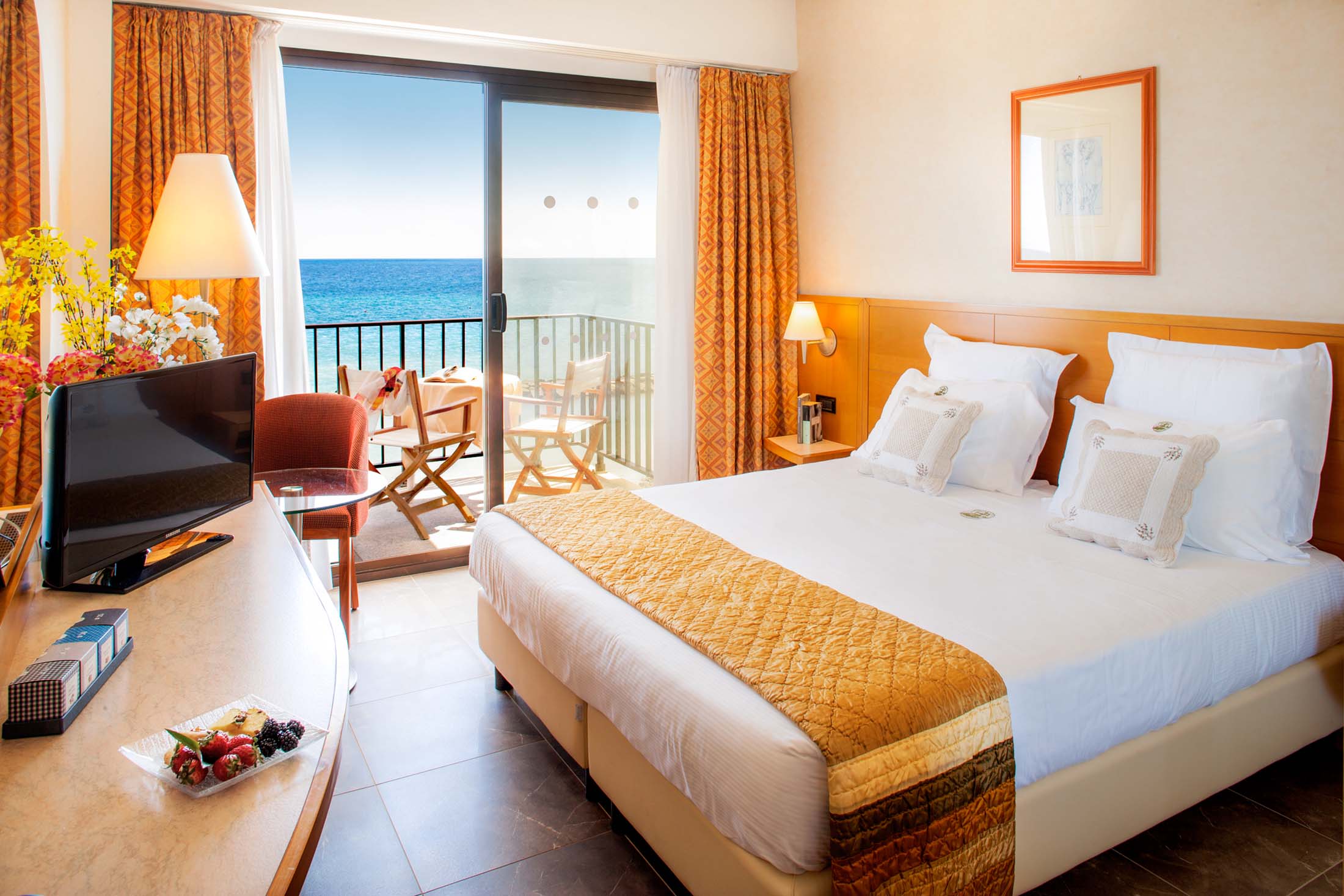 I stiliga rum som är trevligt inredda och har begränsad havsutsikt. Välj mellan rum med frukost eller med halvpension. Luftkonditionering, uppvärmning, kassafack, tv, telefon, Internet, minibar, hårtork, bad/dusch och wc. Balkong.