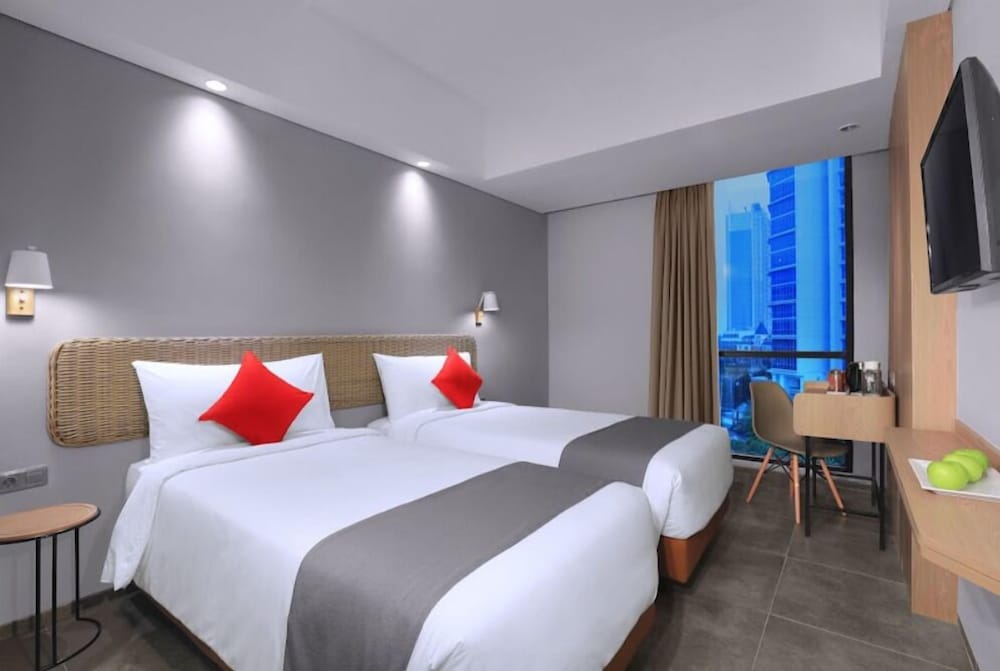 Hotel NEO Puri Indah - Jakarta ligger i Djakarta i affärskvarteren, en kvart med bil från både Thamrin City shoppingcenter och Grand Indonesia. Detta hotell med spa ligger 12,9 km från Blok M Square och 14,9 km från Gelora Bung Karno Stadium. Känn dig som hemma i ett av de 96 luftkonditionerade rummen med LCD-tv. Gratis wi-fi gör att du kan hålla dig uppkopplad, och kabel-tv erbjuder underhållning. Privat badrum med dusch, hårtorkar och tofflor. På rummet finns värdeförvaringsskåp och skrivbord. Städning erbjuds dagligen. Avstånd avrundas till närmsta decimal.