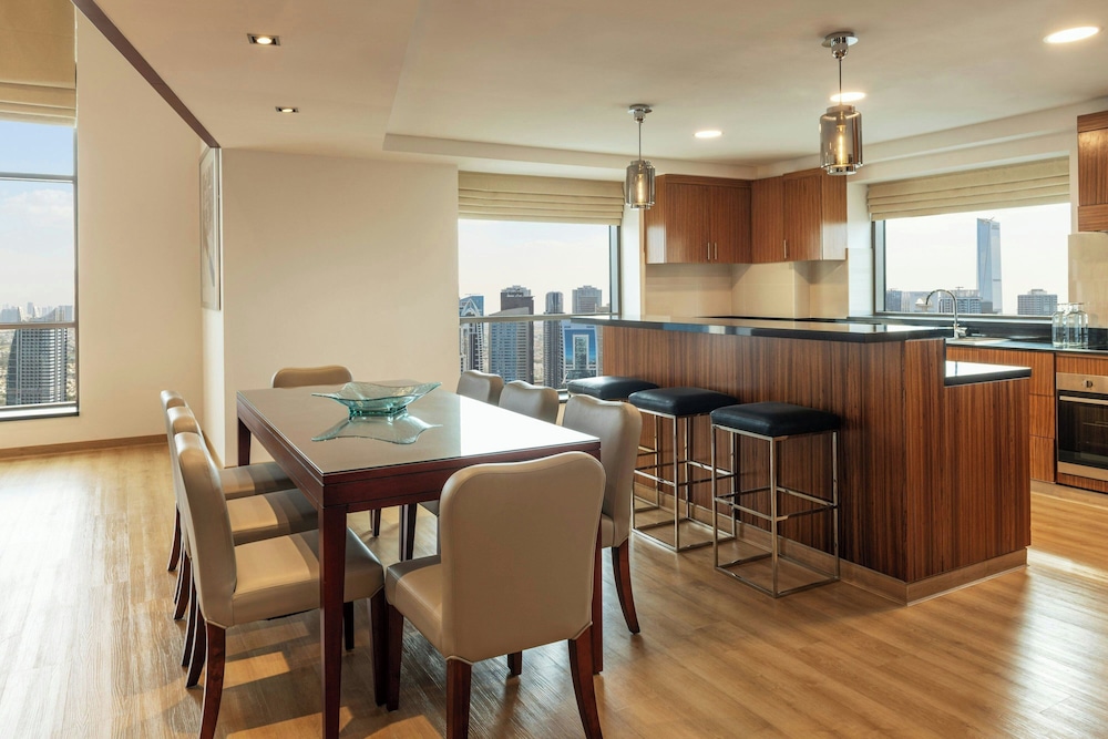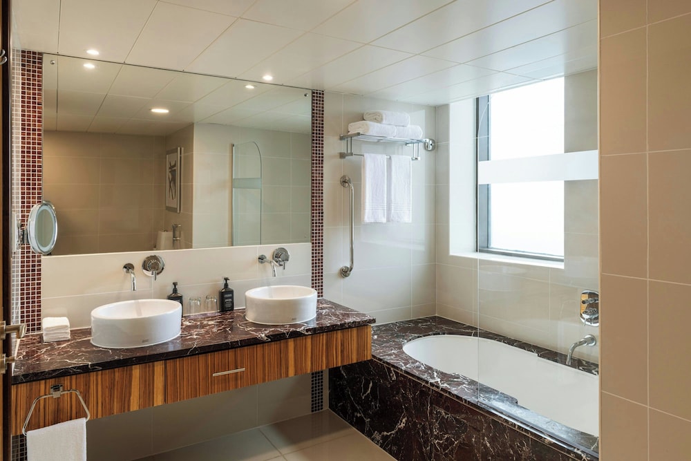 Sheraton The Walk, Dubai placerar dig mitt i Dubai, en 5 minuters promenad från The Beach Mall och 13 minuter från Dubai Marina Mall. Detta hotell ligger 6,4 km från Ain Dubai och 9 km från Souk Madinat Jumeirah. Känn dig som hemma i ett av de 361 luftkonditionerade rummen med minibarer. Gratis wi-fi gör att du kan hålla dig uppkopplad, och kabel-tv erbjuder underhållning. Badrum med badkar/dusch, lyxtoalettartiklar och bidéer. På rummet finns telefon, värdeförvaringsskåp och skrivbord. Avstånd avrundas till närmsta decimal.