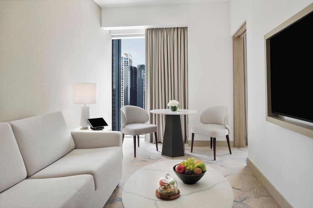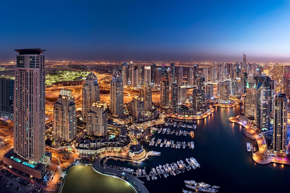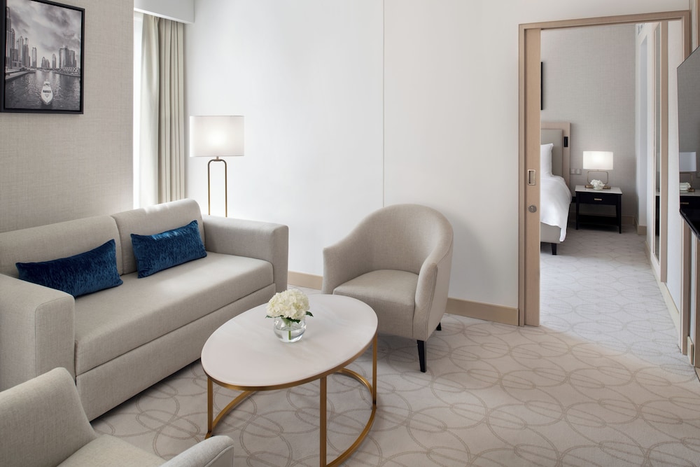 JW Marriott Hotel Marina placerar dig i Dubai-området Dubai Marina, med 3 minuters körväg till Dubai Marina Mall och 6 minuter till The Beach Mall. Detta hotell med familjevänlig profil ligger 6,6 km från Jebel Ali Race Course. Känn dig som hemma i ett av de 200 rummen med minibarer och LCD-tv. Gratis wi-fi gör att du kan hålla dig uppkopplad, och satellit-tv erbjuder underhållning. Badrum med badkar och dusch, lyxtoalettartiklar och bidéer. På rummet finns telefon, värdeförvaringsskåp och skrivbord. Avstånd avrundas till närmsta decimal.