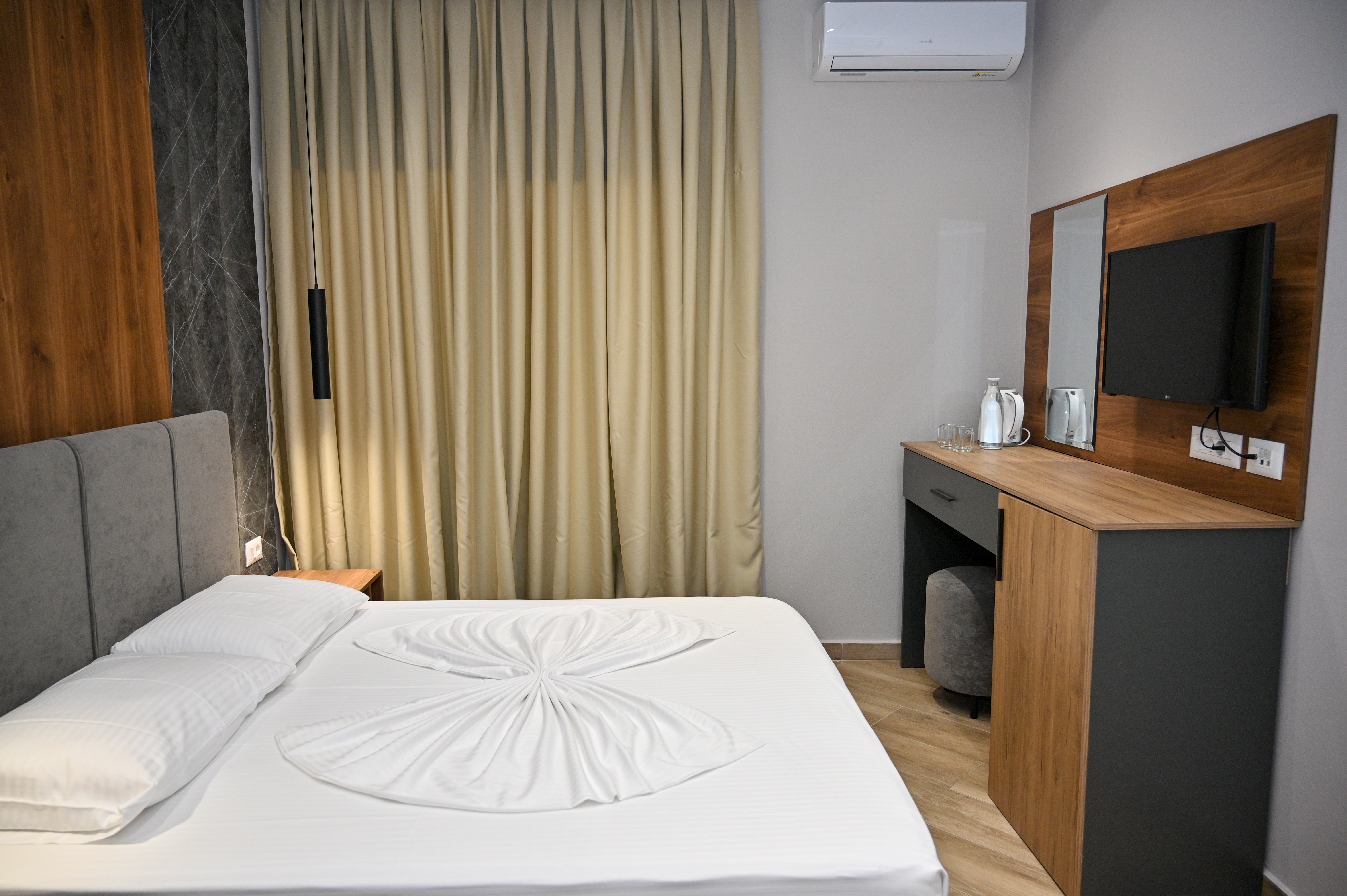 Beläget bara 300 meter från Durres Beach, erbjuder det nyligen renoverade MondurO Hotel gästerna modern komfort och bekvämlighet. Varje luftkonditionerad enhet har en garderob, vattenkokare, kylskåp, värdeskåp, platt-TV, privat badrum med dusch och en balkong. Som gäst kan du njuta av en frukostbuffé varje morgon, och kostnadsfritt Wi-Fi och parkering tillhandahålls också. Tirana Mother Teresa International Airport ligger 34 km från hotellet.