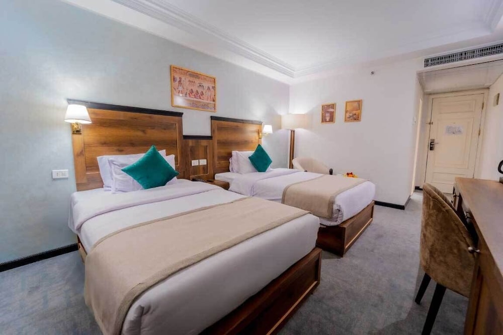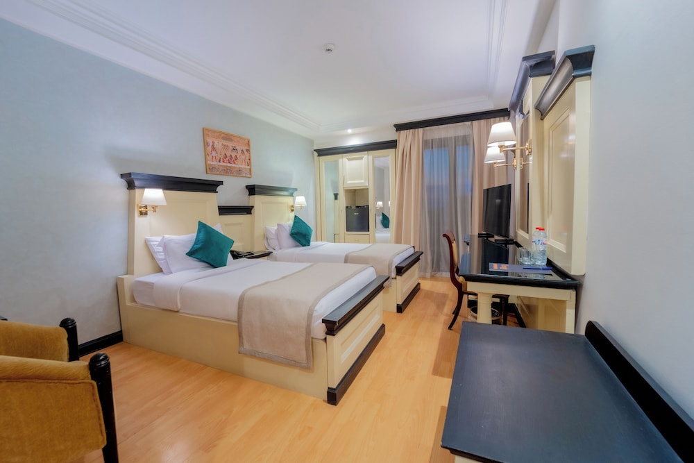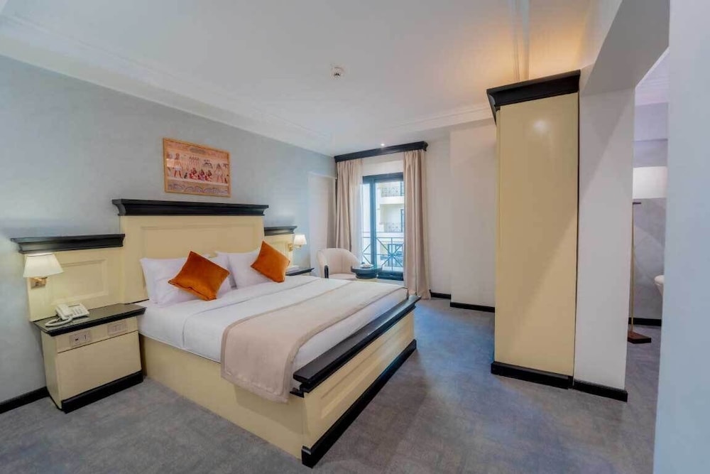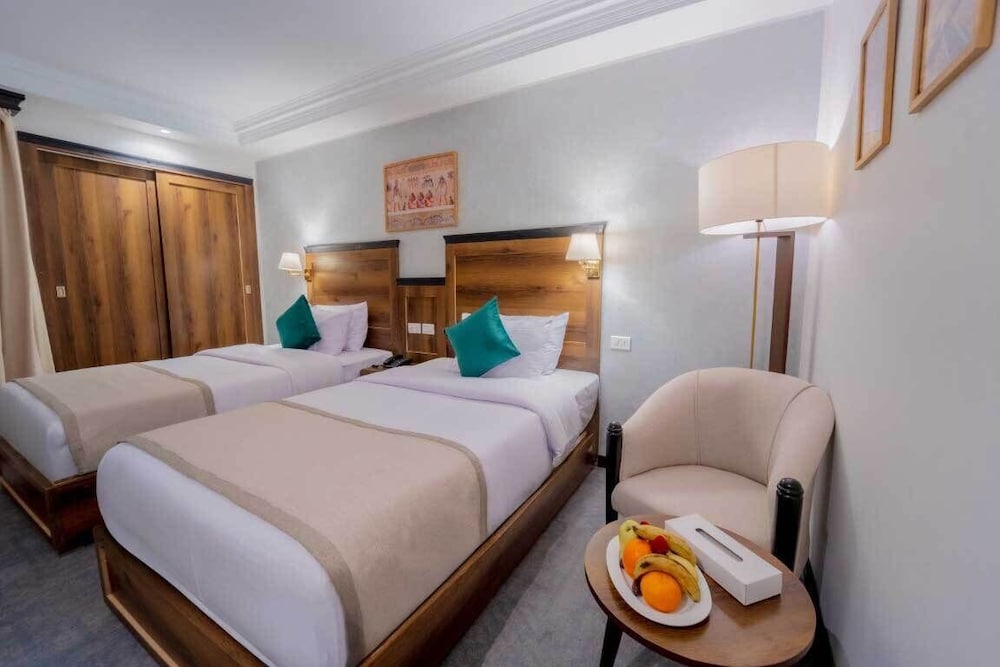 The Temple Hotel Luxor ligger centralt i Luxor, 3 min promenad från Nilen och 9 min från Luxor Corniche. Detta hotell med spa ligger 16,6 km från Konungarnas dal och 0,9 km från Mansheya Street. Känn dig som hemma i ett av de 173 rummen. Gratis wi-fi gör att du kan hålla dig uppkopplad. Badrummen har badkar/dusch och hårtorkar. På rummet finns värdeförvaringsskåp och uppbäddningsservice. Städning erbjuds dagligen. Avstånd avrundas till närmsta decimal.