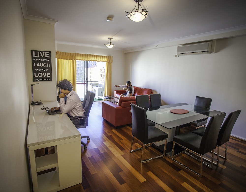 I Perth-området East Perth ligger Starwest Apartments Alderney on Hay, tio minuters promenad från Perth Mint och WACA. Detta hotell ligger 1,1 km från Royal Perth Hospital och 2 km från Elizabeth Quay. Känn dig som hemma i ett av de 62 luftkonditionerade rummen som har kök med stor kyl/frys och spishäll. Rummen har privata balkonger. En LED-tv och dvd-spelare erbjuder underhållning. På rummet finns telefon, värdeförvaringsskåp och mikrovågsugnar. Avstånd avrundas till närmsta decimal.