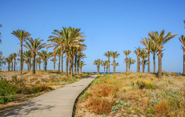 Ta en morgonpromenad för att utforska de utmärkta kollektivtrafikalternativen till närliggande Castellón eller Benicàssim-stranden, eller cykla längs den närliggande cykelvägen till Oropesa. Vandra genom naturparken Desierto de las Palmas, promenera genom den historiska gamla stan i Castellón, besök katedralen Santa María och prova regionala specialiteter på den färgglada veckomarknaden. Sola på den fina sandstranden Playa del Gurugú och utforska de charmiga byarna i inlandet, till exempel Vilafamés med sitt medeltida slott och konstgallerier.