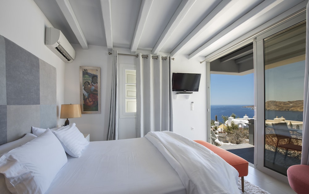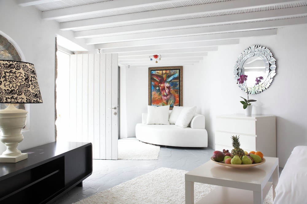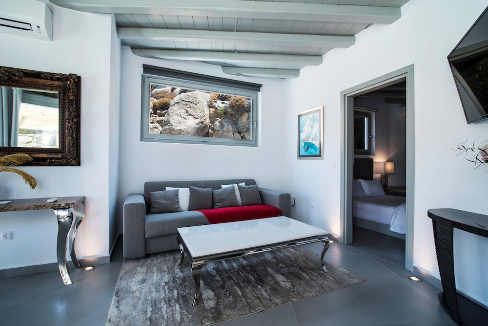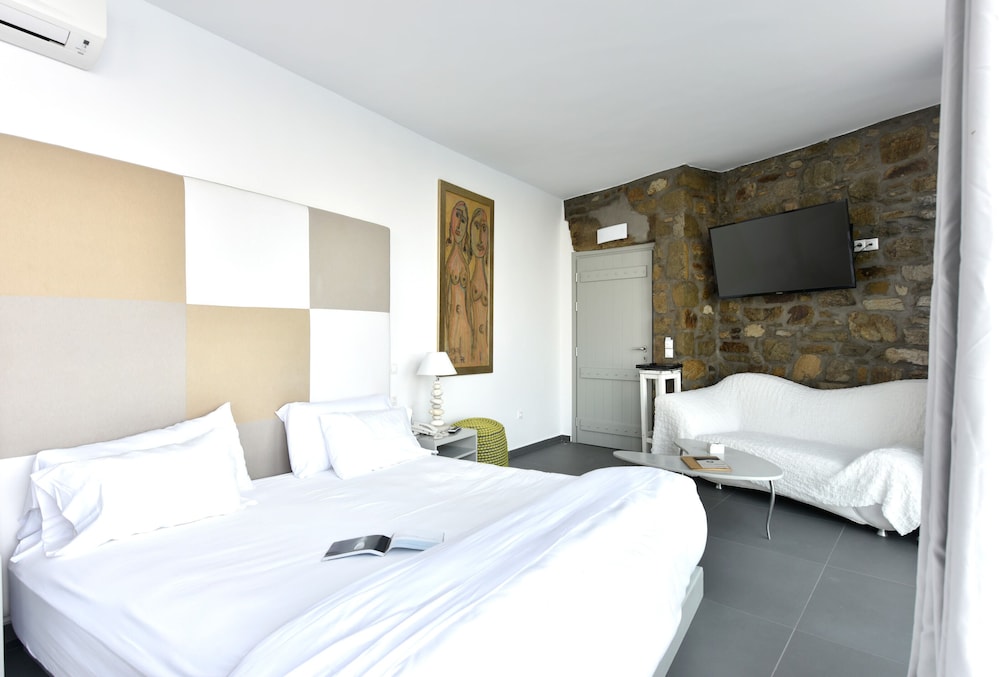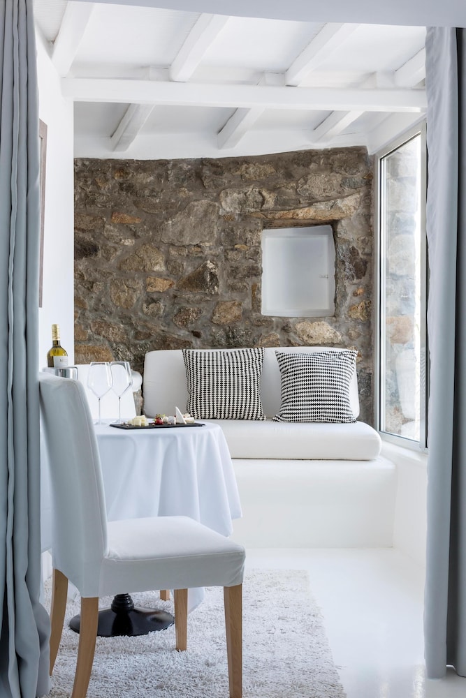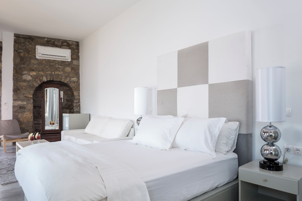Greco Philia Hotel Boutique by Mr and Mrs White ligger i Mykonos nära flygplatsen, en kvart med bil från både Mykonos gamla hamn och Elia strand. Detta hotell vid stranden ligger 13,5 km från Mykonos nya hamn och 10,3 km från Paradise Beach. Känn dig som hemma i ett av de 32 individuellt inredda rummen med minibarer och espressobryggare. Sängen har Tempur Pedic-madrass och duntäcken. Rummen har privata balkonger/terrasser. Gratis wi-fi ser till att du kan hålla dig uppkopplad, och en 32-tums platt-tv med satellitkanaler erbjuder all underhållning du behöver. Badrum med badkar eller dusch, regndusch och hårtorkar. Avstånd avrundas till närmsta decimal.