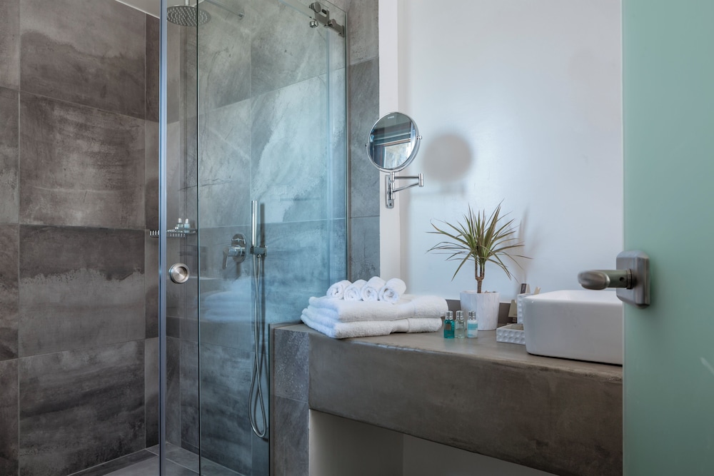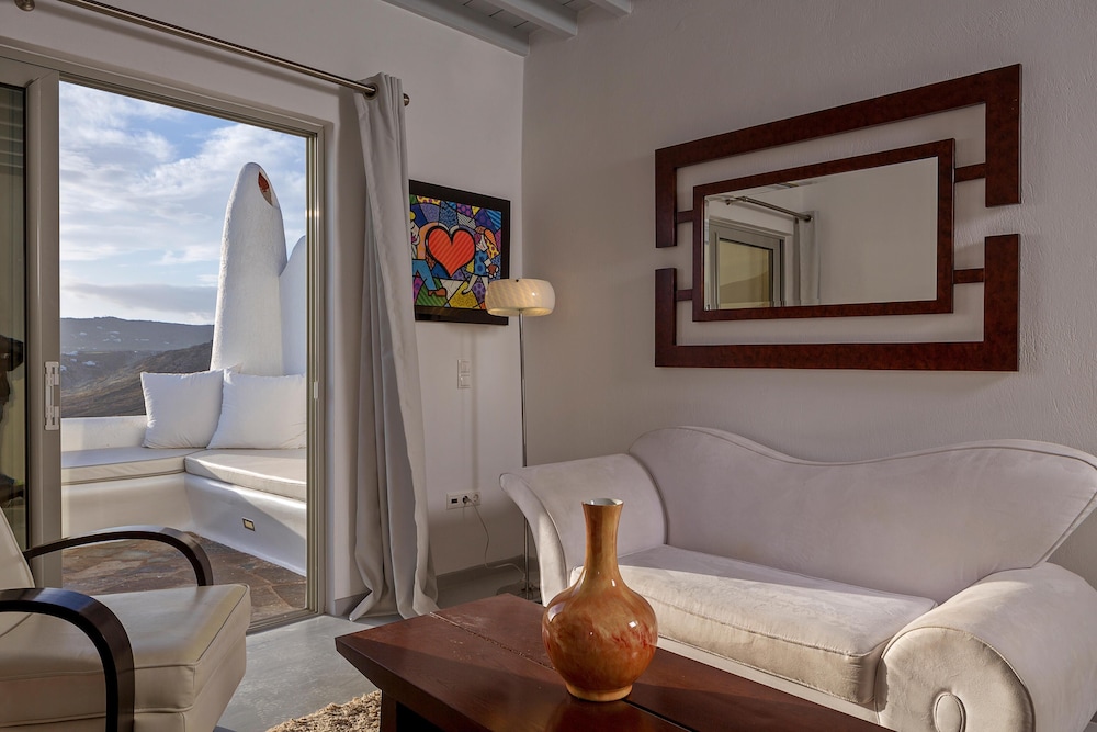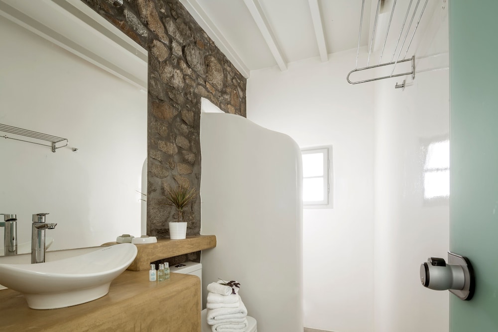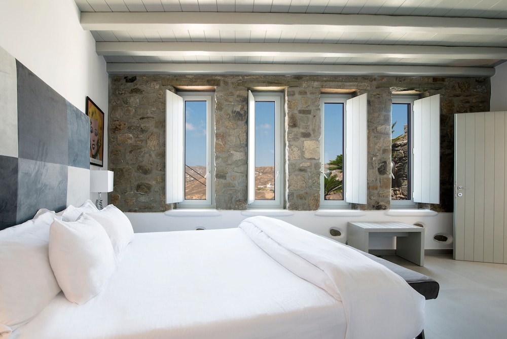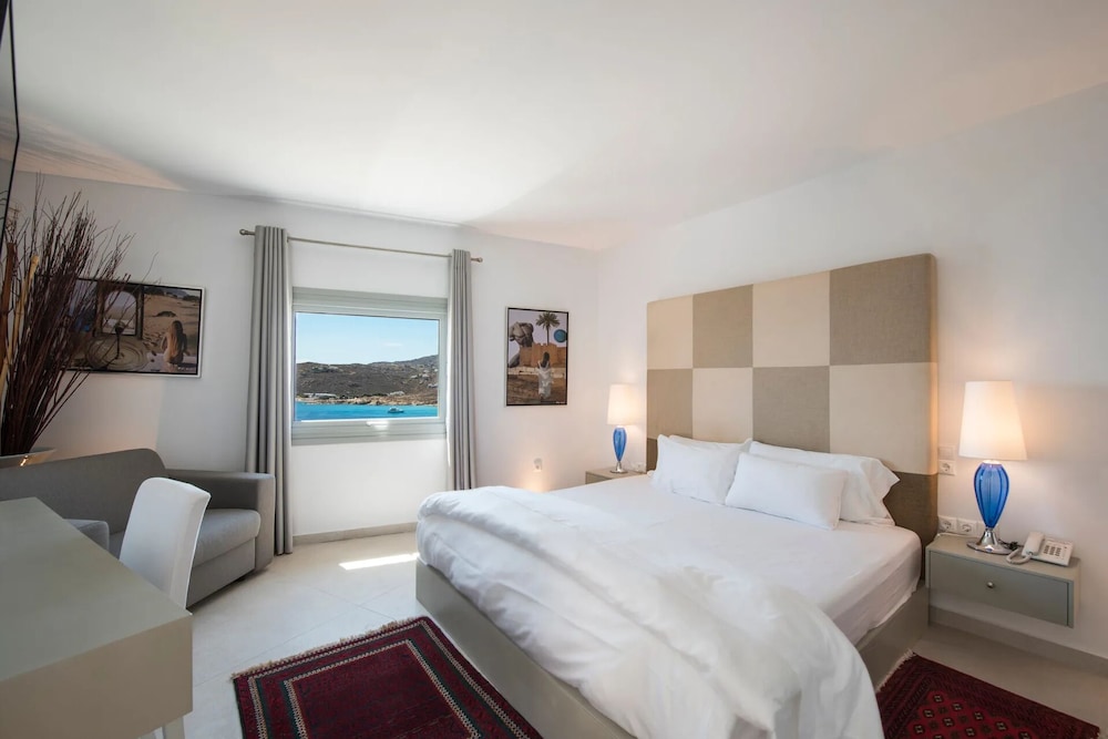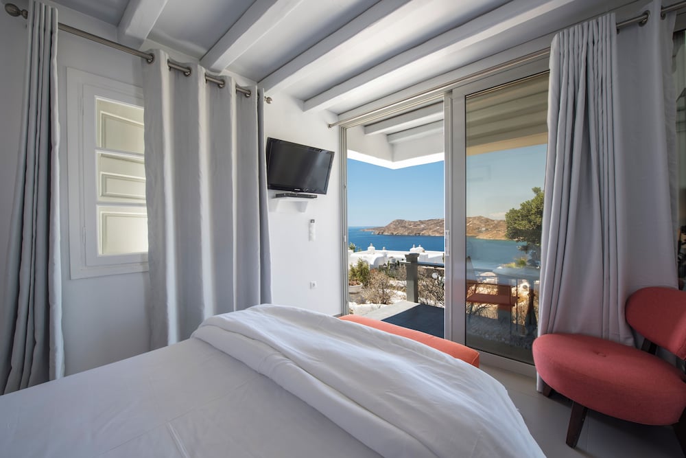 Greco Philia Hotel Boutique by Mr and Mrs White ligger i Mykonos nära flygplatsen, en kvart med bil från både Mykonos gamla hamn och Elia strand. Detta hotell vid stranden ligger 13,5 km från Mykonos nya hamn och 10,3 km från Paradise Beach. Känn dig som hemma i ett av de 32 individuellt inredda rummen med minibarer och espressobryggare. Sängen har Tempur Pedic-madrass och duntäcken. Rummen har privata balkonger/terrasser. Gratis wi-fi ser till att du kan hålla dig uppkopplad, och en 32-tums platt-tv med satellitkanaler erbjuder all underhållning du behöver. Badrum med badkar eller dusch, regndusch och hårtorkar. Avstånd avrundas till närmsta decimal.