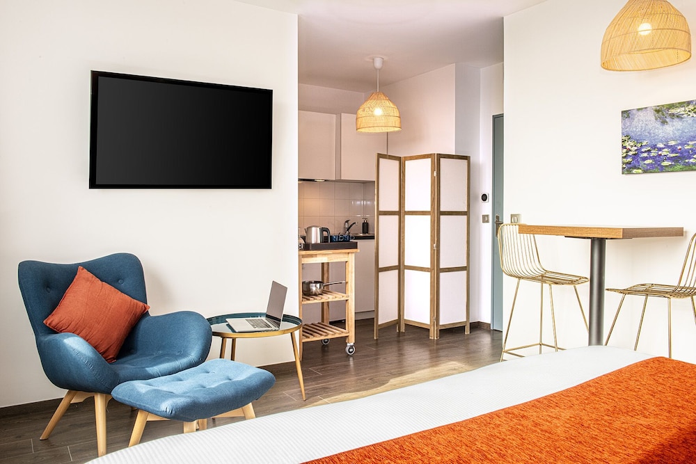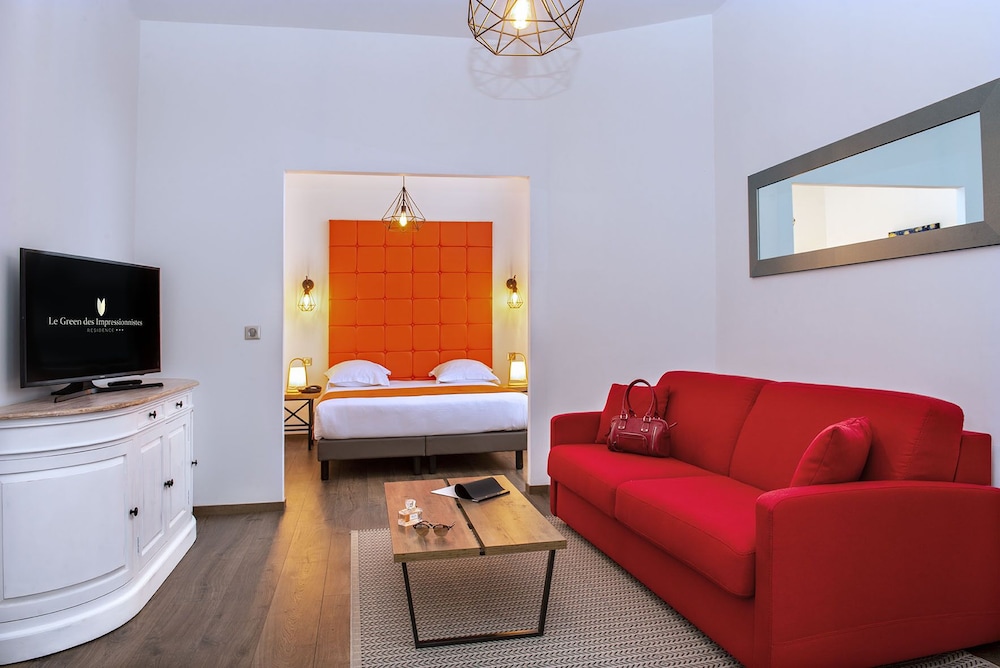 I Ennery ligger Le Green des Impressionnistes i en regionalpark, en tio minuters bilfärd från Abbaye de Maubuisson och Auvers slott. Detta hotell med golfbana ligger 4,6 km från Pontoise-katedralen och 4,7 km från CY Cergy Paris Université. Känn dig som hemma i ett av de 110 individuellt inredda rummen som har pentry med kylskåp och spishäll. Gratis wi-fi ser till att du kan hålla dig uppkopplad, och en 80-centimeters LCD-tv med digitalkanaler erbjuder all underhållning du behöver. På rummet finns telefon, värdeförvaringsskåp och skrivbord. Avstånd avrundas till närmsta decimal.