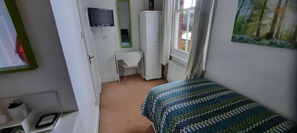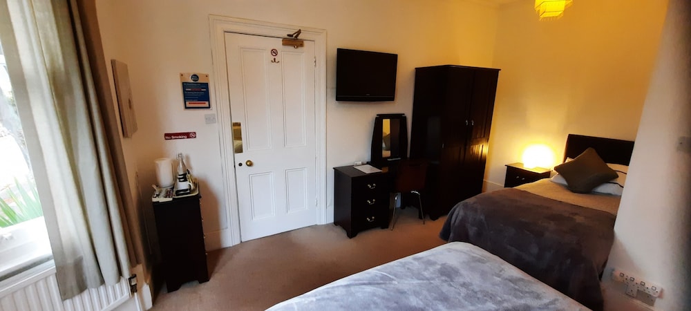 Colebrook Guest House placerar dig i Farnborough-området Rushmoor District, med 2 minuters körväg till Farnborough International Exhibition and Conference Centre och 10 minuter till Farnham Castle. Detta pensionat ligger 16,7 km från South Downs National Park och 19,4 km från High Street. Känn dig som hemma i ett av de 13 rummen med platt-tv. Gratis wi-fi gör att du kan hålla dig uppkopplad, och digital-tv erbjuder underhållning. Privat badrum med dusch, gratis toalettartiklar och hårtorkar. På rummet finns skrivbord och kaffe- och tebryggare. Städning erbjuds dagligen. Avstånd avrundas till närmsta decimal.