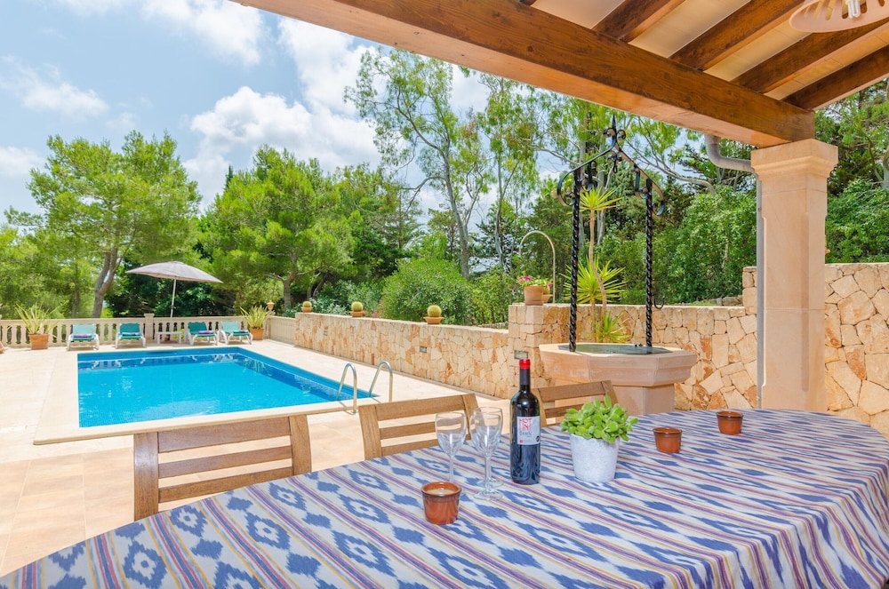 Denna villa ligger i Felanitx, en femton minuters bilfärd från både Cala d'Or Marina och Vall d'Or Golf. Denna villa ligger 14 km från Cala Domingos strand och 15,7 km från Llombards-stranden. Känn dig som hemma i villan. Avstånd avrundas till närmsta decimal.