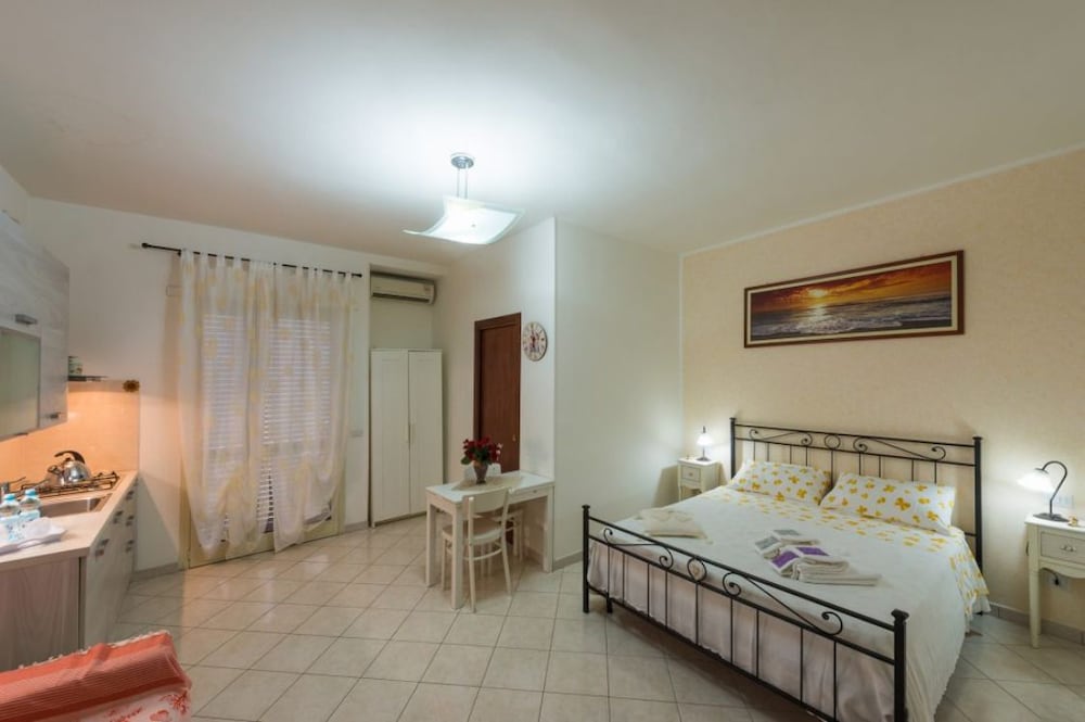 B&B Seros ligger i Gaeta, en tio minuters bilfärd från både Serapos strand och Gaetabukten.  Detta pensionat ligger 2,8 km från Parco Regionale Riviera di Ulisse och 3,3 km från Il Molo Gelateria. Känn dig som hemma i ett av de 4 luftkonditionerade rummen med kylskåp och platt-tv. Rummen har privata balkonger. Gratis wi-fi gör att du kan hålla dig uppkopplad, och digital-tv erbjuder underhållning. Privat badrum med dusch, gratis toalettartiklar och bidéer. Avstånd avrundas till närmsta decimal.