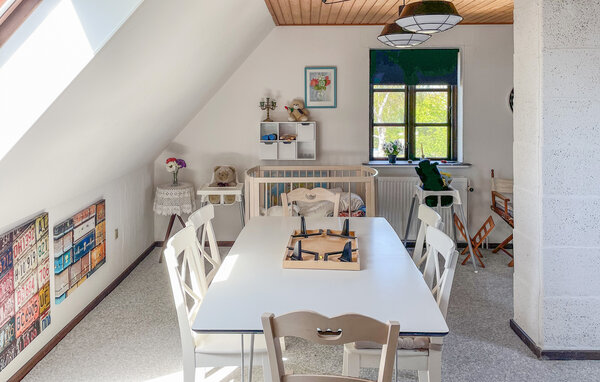 I detta semesterhus bor du i ett lugnt och lantligt läge, men ändå bara en kort bilresa från kusten. Låt er välkomnas av den vänliga atmosfären och de genomtänkta detaljerna i detta semesterhus. Inuti hittar du mysigt inredda rum med gott om utrymme för att tillbringa tid tillsammans. Koppla av i den stora hörnsoffan, läs en bok eller planera nästa utflykt vid det långa matbordet. I det ljusa köket med öppen planlösning finns en matplats och en vacker utsikt över grönskan. På övervåningen finns ytterligare sittplatser, en TV och en lekplats, perfekt för barn eller lugna kvällar med familj eller vänner.