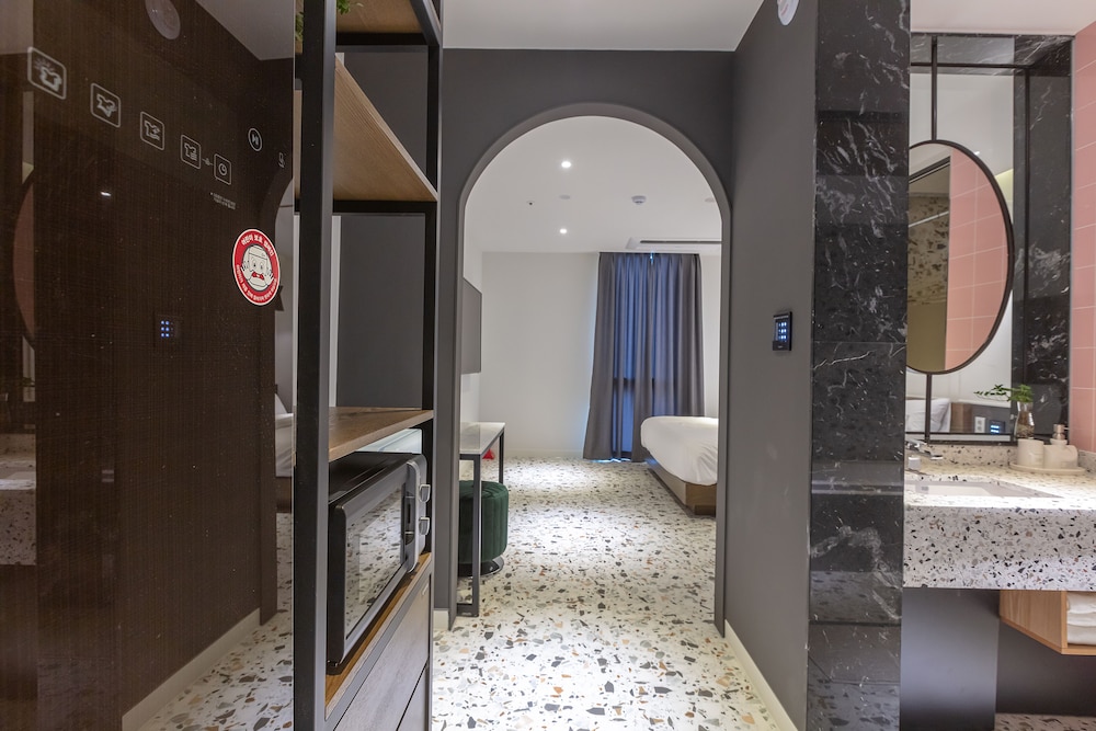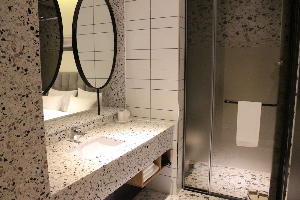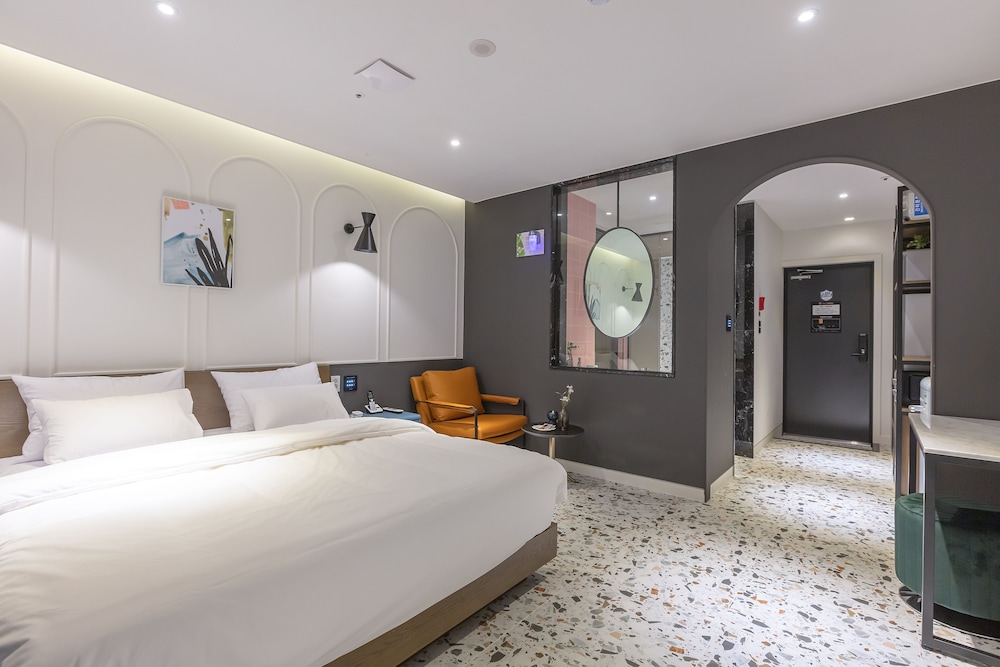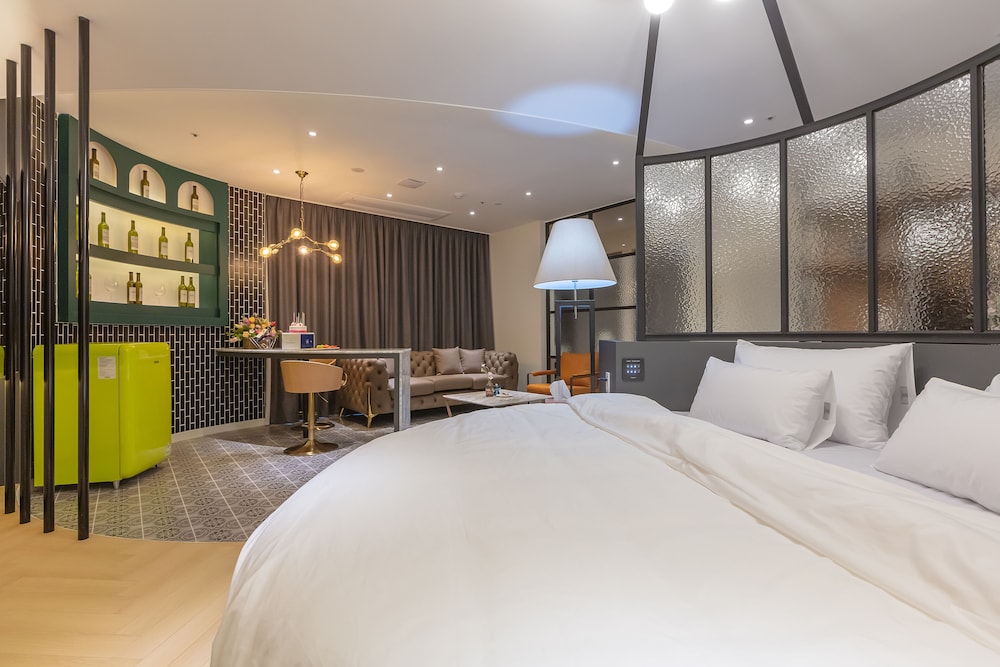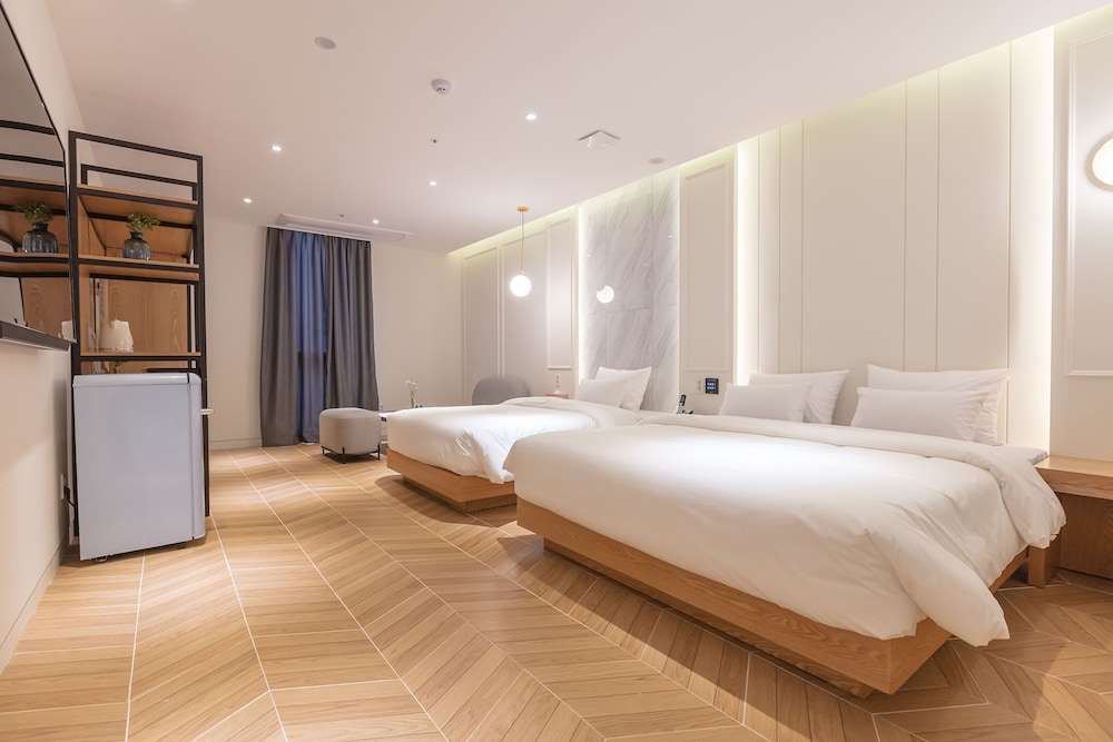 NOMAD HOTEL ligger i Gimhae (i området Eobang-dong), ett stenkast från Shineo bowlinghall och 3 min med bil från Dongsang marknad. Detta hotell ligger 21,9 km från Lotte Department Store, Busans huvudcenter och 26,1 km från Nampodong Street. Skäm bort dig och bo i ett av 46 individuellt inredda rum med golvvärme och LED-tv. Sängen har duntäcken och sängtillbehör av högsta kvalitet. Gratis wi-fi gör att du kan hålla dig uppkopplad, och kabel-tv erbjuder underhållning. Privat badrum har djupa badkar och regndusch. Avstånd avrundas till närmsta decimal.