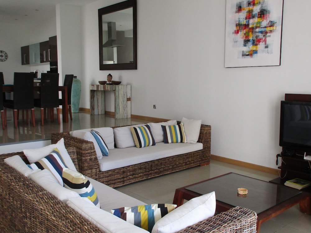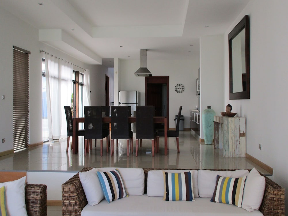 Denna villa ligger i Grand Baie bredvid en golfbana, en kvart med bil från både Grand Bay-stranden och Plage de Trou aux Biches. Denna villa med kasino ligger 5,4 km från Plage de Pereybere och 13,6 km från Turtle Bay. Slå dig till ro i den här luftkonditionerade villan, som har ett kylskåp och en ugn i köket. Det finns en privat balkong eller terrass. En platt-tv med satellitkanaler står för underhållningen, och gratis wi-fi gör att du kan hålla dig uppkopplad. Bekvämligheter som ingår är mikrovågsugn och kaffe- och tebryggare. Städning sker dagligen. Avstånd avrundas till närmsta decimal.