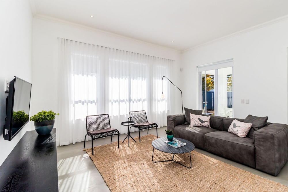 Perla ligger i Hermanus (i området Eastcliff), en tio minuters promenad från både Village Square och Shopping Centre. Denna stuga i lyxstil ligger 0,6 km från Old Harbour och 0,6 km från Whale Museum. Känn dig som hemma i ett av de 5 rummen som har kök med stor kyl/frys och ugn. Sängen har memory foam-madrass och egyptiska bomullslakan. Rummen har privata terrasser. Gratis wi-fi gör att du kan hålla dig uppkopplad, och en platt-tv med satellitkanaler erbjuder all underhållning du behöver. Privat badrum med badkar och dusch, djupa badkar och gratis toalettartiklar. Avstånd avrundas till närmsta decimal.
