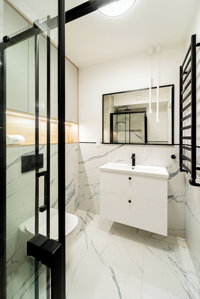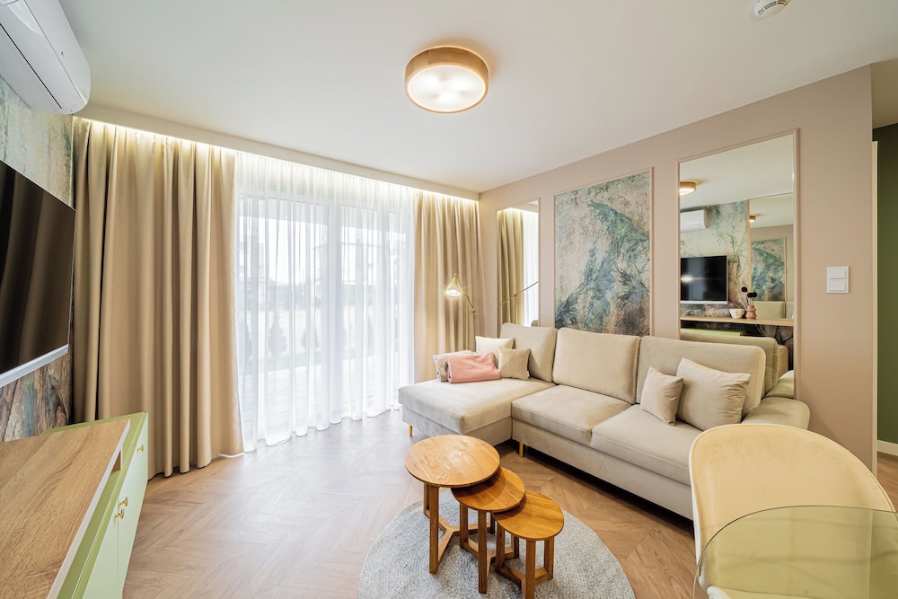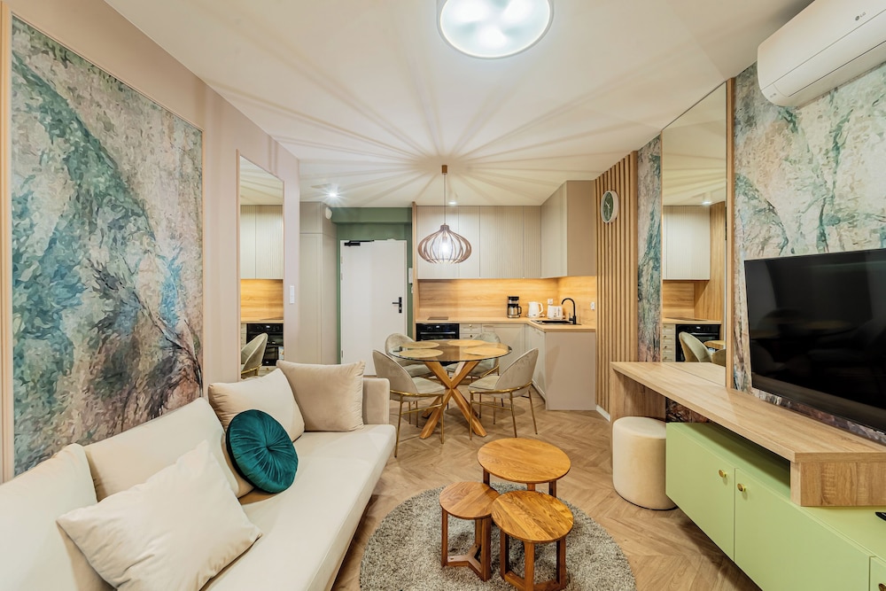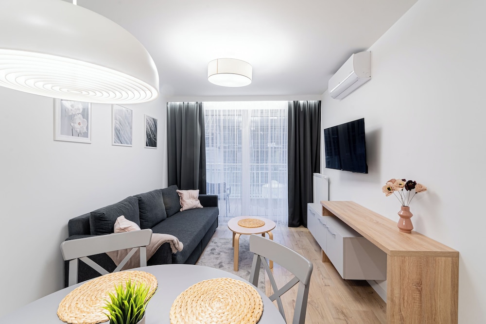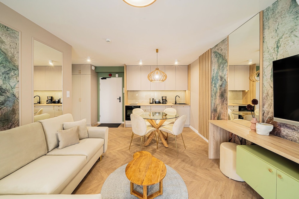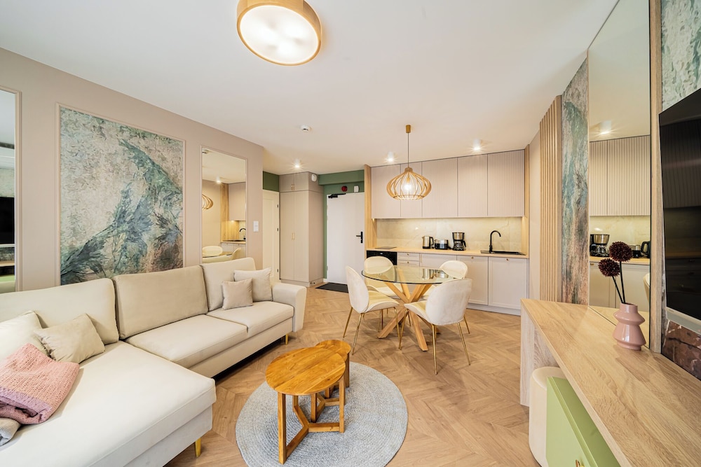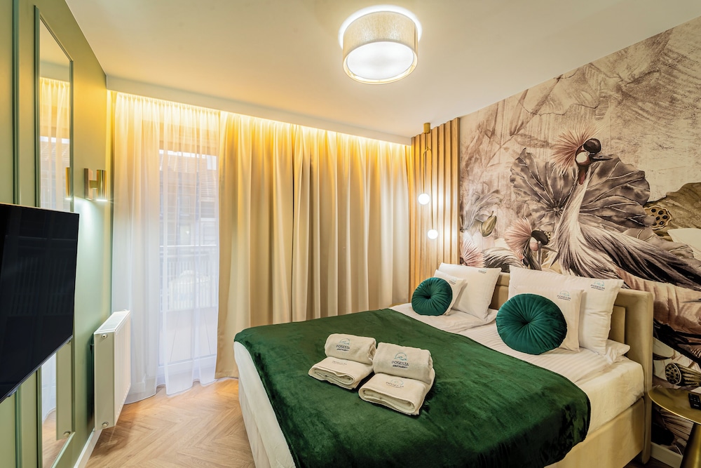 I Kołobrzeg ligger Apartments & SPA Posesja Plażowa Grzybowo by POSESJA APARTAMENTY 4a I vid havet, 1 min med bil från Grzybowo-stranden och 6 min från go-karts. Denna lägenhet med spa ligger 3,5 km från Zachodnia-stranden och 5,2 km från Solna marina. Yachtport. Känn dig som hemma i ett av de 6 individuellt inredda rummen som har pentry med kylskåp och spishäll. Rummen har privata inredda balkonger/terrasser. Gratis wi-fi ser till att du kan hålla dig uppkopplad, och en 50-tums smart-tv med kabelkanaler erbjuder all underhållning du behöver. På rummet finns separata sittutrymmen och vattenkokare. Avstånd avrundas till närmsta decimal.