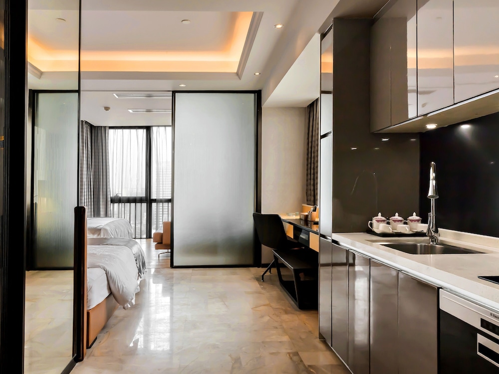 Pengman Beijing Rd Apartment ligger mitt i Guangzhou, en 5 minuters promenad från Beijing Road gågata och 11 minuter från Huaishengs moské. Detta lägenhetshotell ligger 1 km från Liurong-templet och 2 km från Zhenhai Tower. Känn dig som hemma i ett av de 100 luftkonditionerade rummen som har kök med kylskåp och spishäll. Med gratis internet/wi-fi håller du dig uppkopplad, medan digitalkanaler står för underhållningen. På rummet finns värdeförvaringsskåp, skrivbord och telefon med gratis lokalsamtal. Avstånd avrundas till närmsta decimal.