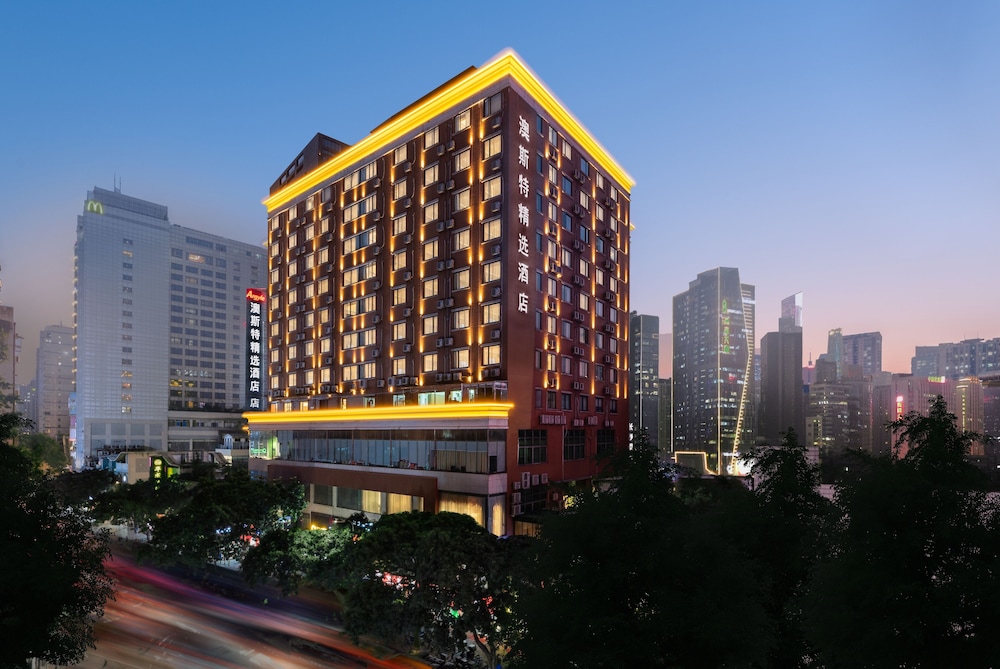 Ausotel Smart Zhujiang New Town Guangzhou placerar dig mitt i Guangzhou, med inte mer än tio minuters bilfärd från Canton-tornet och Canton Fair Complex. Detta hotell ligger 9,5 km från Beijing Road gågata och 9,7 km från Berget Baiyun. Känn dig som hemma i ett av de 175 luftkonditionerade rummen med minibarer. Sängen har duntäcken och sängtillbehör av högsta kvalitet. Gratis wi-fi gör att du kan hålla dig uppkopplad, och kabel-tv erbjuder underhållning. Privat badrum med dusch, gratis toalettartiklar och hårtorkar. Avstånd avrundas till närmsta decimal.