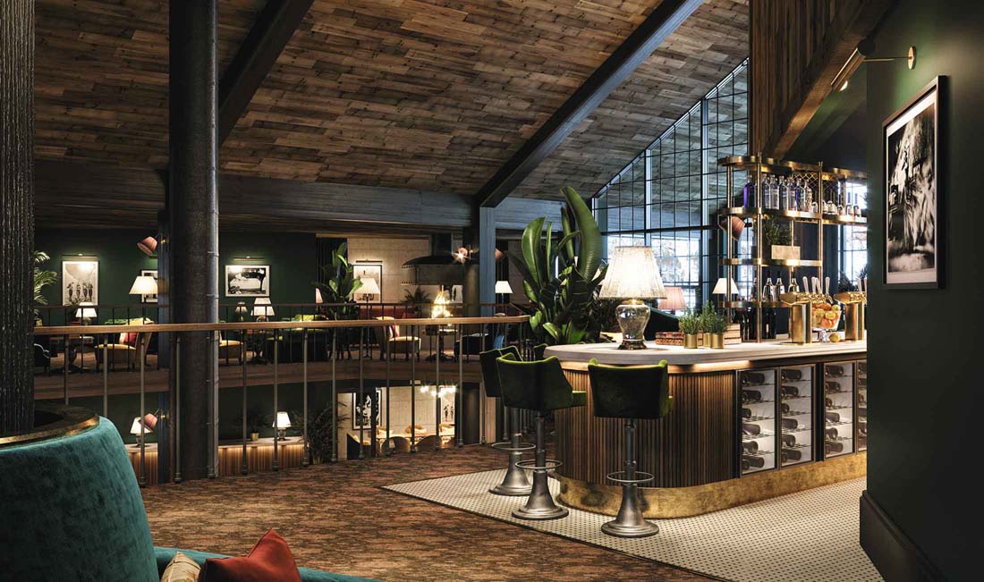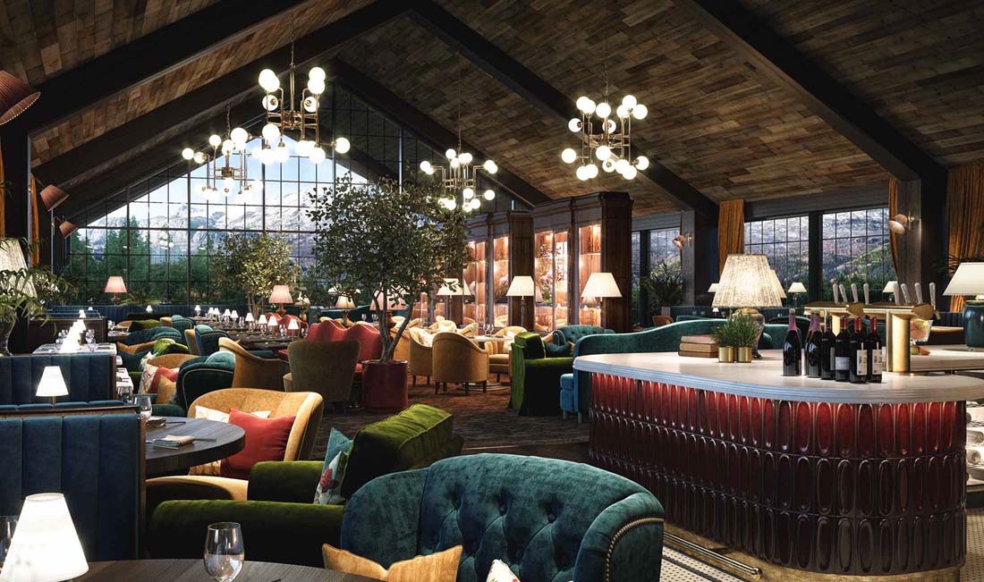 Här är det lätt att umgås i någon av de sociala ytorna som är gjorda för att hänga efter en dag i naturen. Öppna spisar som knastrar i bakgrunden, fantastisk och varm inredning som inbjuder dig till både restauranger och barer.