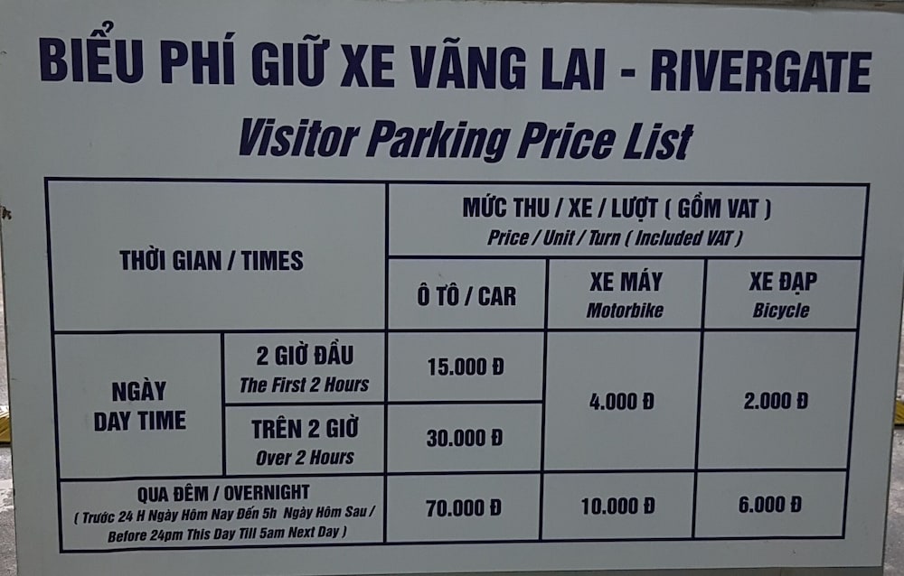 - Avgift för bevakad parkering: VND 100000.00 per dag