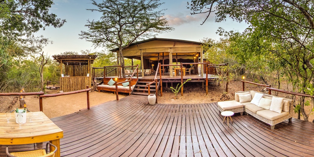 Ngama Tented Safari Lodge ligger i Guernsey Private Nature Reserve i en nationalpark, 39,3 km från Kruger National Park och 14,9 km från Mafunyani Cultural Village. Denna tältstuga ligger 14,9 km från Nyani Cultural Village och 38,5 km från Hoedspruit Wildlife Estate. Känn dig som hemma i ett av de 6 rummen. Rummen har privata inredda balkonger/terrasser. Badrummen har gratis toalettartiklar och hårtorkar. På rummet finns värdeförvaringsskåp och vattenkokare. Städning erbjuds dagligen. Avstånd avrundas till närmsta decimal.
