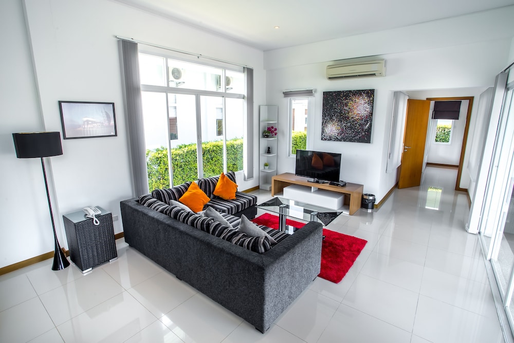 Black Mountain Resort ligger i Hua Hin, ett stenkast från Black Mountain golfklubb och 3 min med bil från Black Mountain Water Park. Denna villa med golfbana ligger 10,2 km från Hua Hins nattmarknad och 10,5 km från Hua Hins järnvägsstation. Känn dig som hemma i ett av de 39 luftkonditionerade rummen som har kök med stor kyl/frys och mikrovågsugn. Rummen har privata inredda terrasser. Gratis wi-fi ser till att du kan hålla dig uppkopplad, och en 40-tums LCD-tv med satellitkanaler erbjuder all underhållning du behöver. På rummet finns telefon, värdeförvaringsskåp och separata sittutrymmen. Avstånd avrundas till närmsta decimal.