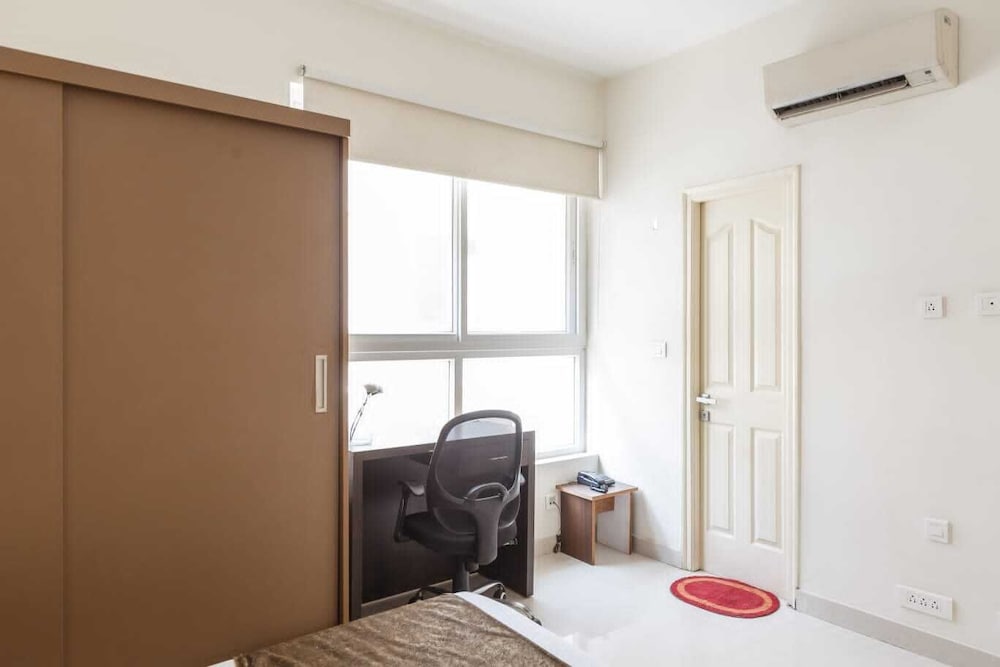 Olive Serviced Apartments Hitech City Hyderabad ligger i Hyderabad (i området HITEC City), en kvarts promenad från både Mindspace IT Park och Durgam Cheruvu-sjön. Denna lägenhet ligger 14 km från Hussain Sagar-sjön och 18,4 km från Charminar. Känn dig som hemma i ett av de 99 rummen som har pentry med kylskåp och mikrovågsugn. Gratis wi-fi gör att du kan hålla dig uppkopplad, och en platt-tv med satellitkanaler erbjuder all underhållning du behöver. På rummet finns vattenkokare. Städning erbjuds en gång per vistelse. Avstånd avrundas till närmsta decimal.