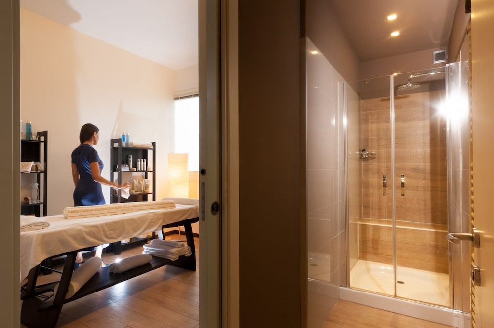 Hotel Donatello Imola ligger i Imola i anslutning till kongresscentret, en fem minuters bilfärd från både Autodromo Internazionale Enzo e Dino Ferrari och Montanaraporten. Detta hotell med spa ligger 2,8 km från Rocca Sforzesca och 3,2 km från Palazzo Machirelli. Känn dig som hemma i ett av de 127 rummen med minibarer och LCD-tv. Sängen har Tempur Pedic-madrass, duntäcken och sängtillbehör av högsta kvalitet. Rummen har privata balkonger/terrasser. Gratis wi-fi gör att du kan hålla dig uppkopplad, och satellit-tv erbjuder underhållning. Privat badrum med badkar eller dusch, gratis toalettartiklar och bidéer. Avstånd avrundas till närmsta decimal.