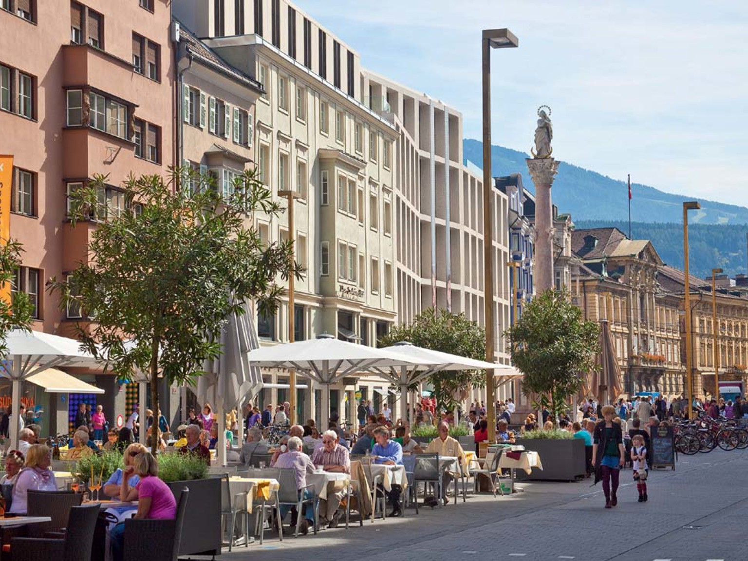 Nutid och historia samsas i Innsbruck. Postmodernismen kan ses i många arkitektoniskt intressanta byggnadsverk. Storslagna monument erinrar om stadens förflutna.