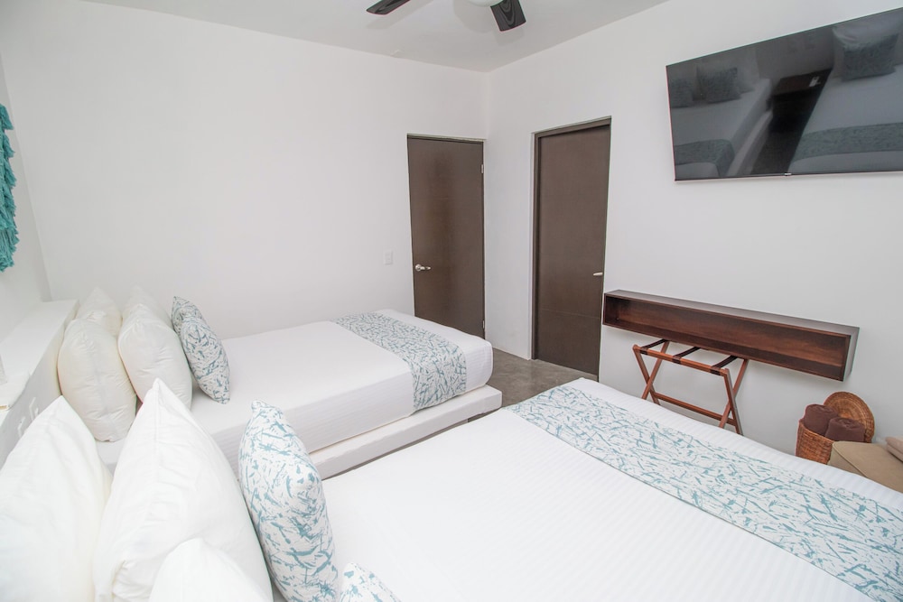 HAU Holbox Beach Front ligger i Isla Holbox på stranden, ett stenkast från både Playa Holbox och Yum Balam naturreservat. Detta hotell vid stranden ligger 0,9 km från Holbox basebollpark och 1,2 km från Bioluminescensstranden. Känn dig som hemma i ett av de 18 luftkonditionerade rummen med smart-tv. Gratis wi-fi gör att du kan hålla dig uppkopplad, och digital-tv erbjuder underhållning. Badrum med dusch, gratis toalettartiklar och hårtorkar. På rummet finns värdeförvaringsskåp och kaffe- och tebryggare. Städning erbjuds dagligen. Avstånd avrundas till närmsta decimal.