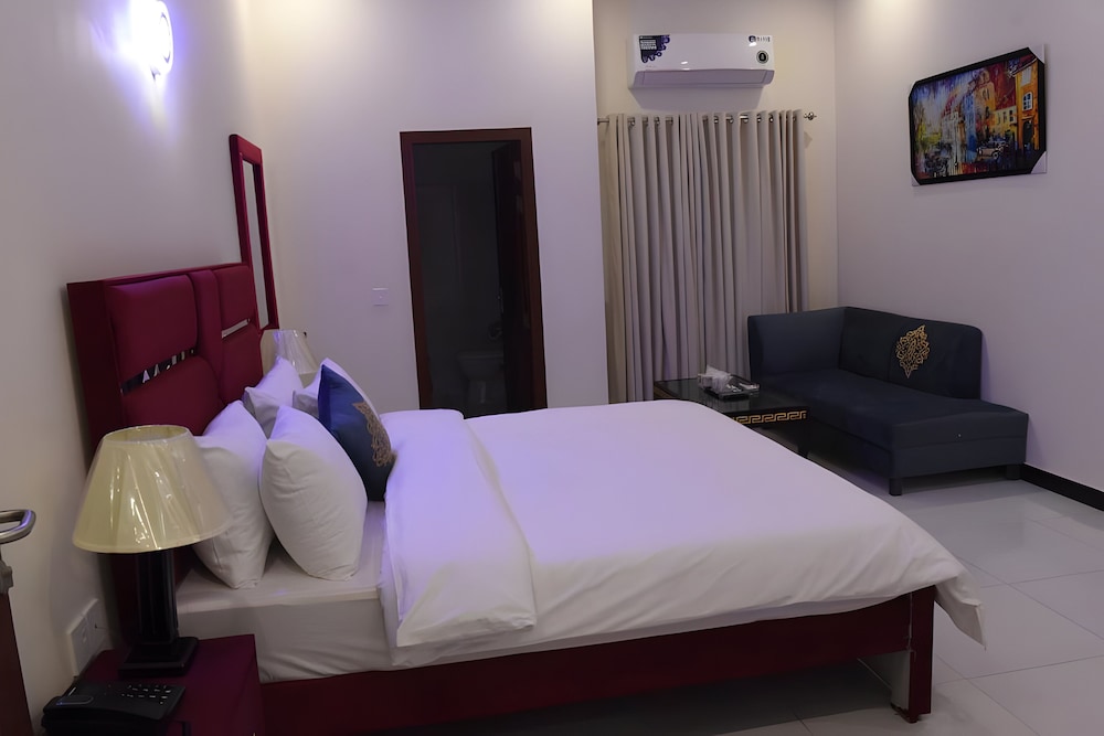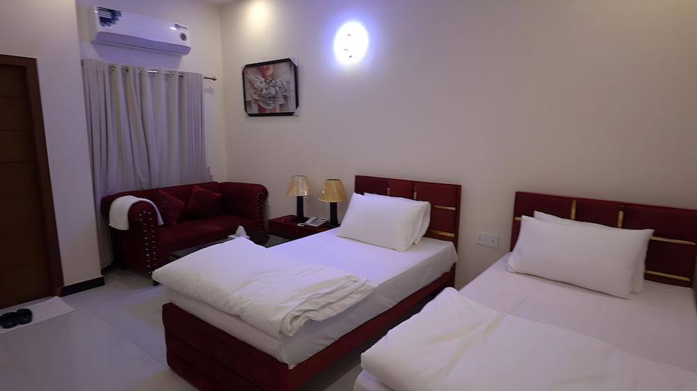 SAZ Hotel Islamabad ligger i Islamabad, en kvarts bilfärd från både International Islamic University och Allama Iqbal Open University. Detta hotell ligger 10,5 km från Golfa Sharifs mausoleum och 14,8 km från Rajah Bazaar. Känn dig som hemma i ett av de 42 luftkonditionerade rummen. Gratis wi-fi gör att du kan hålla dig uppkopplad. Badrummen har dusch och tofflor. På rummet finns värdeförvaringsskåp och separata sittutrymmen. Städning erbjuds dagligen. Avstånd avrundas till närmsta decimal.