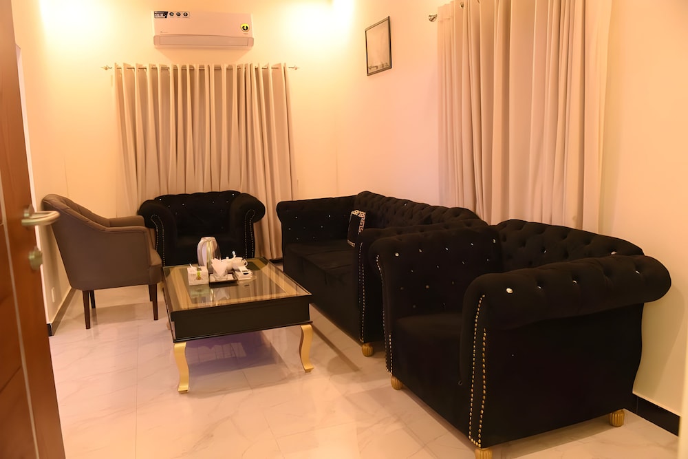 Gäster har tillgång till bland annat reception (öppen dygnet runt) och bagageförvaring. Avgiftsfri parkering erbjuds på plats. Njut av utsikten från deras trädgården och dra nytta av deras gratis wi-fi och conciergetjänster. Boendet har även en tv i allmänt utrymme och bankettsal. Här erbjuds en gratis kontinental frukost dagligen mellan 07.30 och 10.30.Karta över SAZ Hotel Islamabad