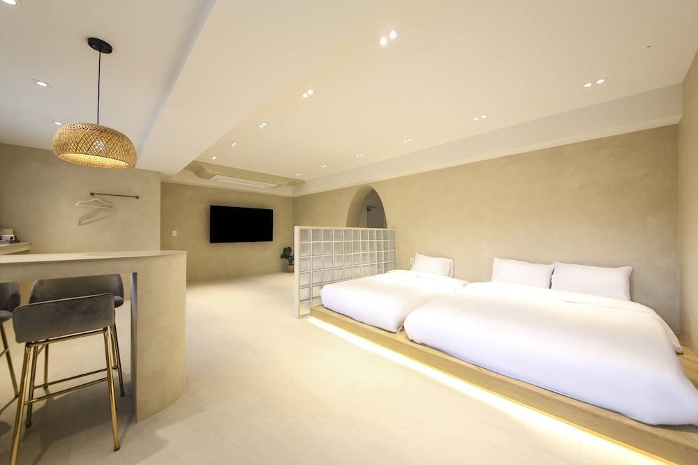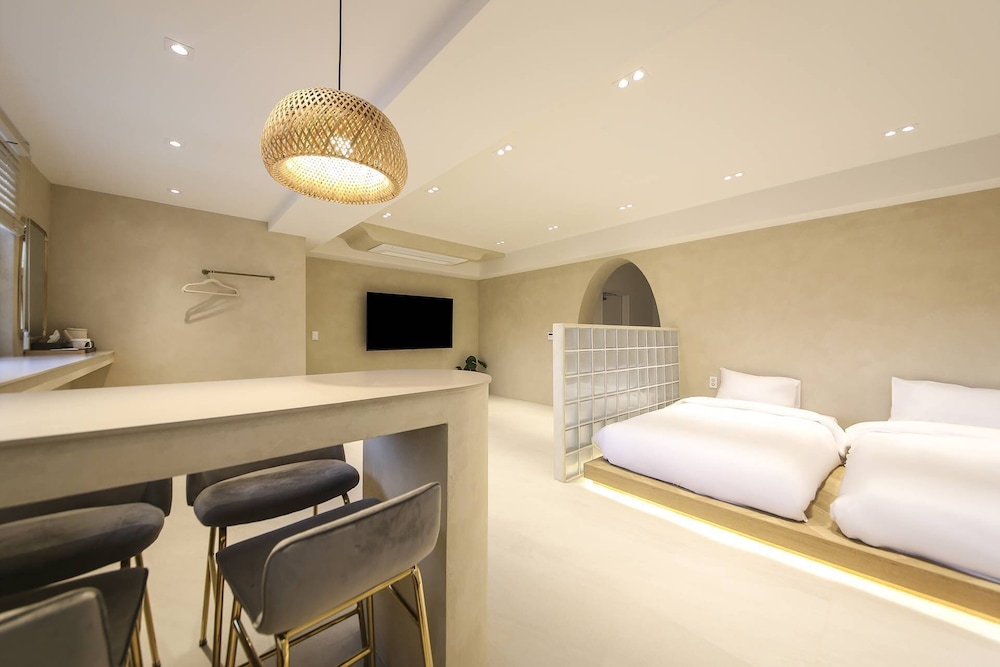 Island Stay ligger i Jeju (i området Centrala Jeju), en 3 minuters promenad från Tapdong Beach Plaza och 7 minuter från Dongmuns marknad. Detta lägenhetshotell ligger 15,7 km från Hamdeok Beach och 0,2 km från Sanjicheon galleri. Känn dig som hemma i ett av de 5 luftkonditionerade rummen. Laga din egen mat i det delade/gemensamma köket. Gratis wi-fi gör att du kan hålla dig uppkopplad, och kabel-tv erbjuder underhållning. Privat badrum med badkar eller dusch, hårtorkar och badrockar. Avstånd avrundas till närmsta decimal.