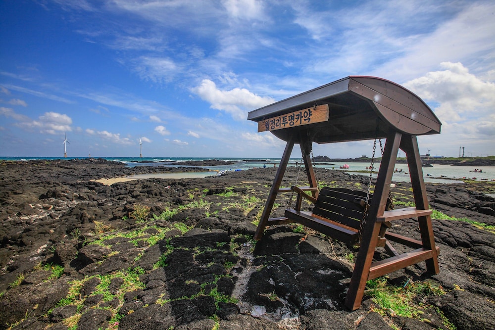 Dahlia ligger i Jeju (i området Gujwa), en 3 minuters promenad från Woljeongs strand och 14 minuter från Dangcheomuldongguls grotta. Detta pensionat vid stranden ligger 13,1 km från Hamdeok Beach och 20 km från Seongsan Ilchulbong. Känn dig som hemma i ett av de 2 rummen som har pentry med kylskåp och spishäll. Gratis wi-fi gör att du kan hålla dig uppkopplad, och en platt-tv med kabelkanaler erbjuder all underhållning du behöver. Privat badrum med badkar och dusch, djupa badkar och gratis toalettartiklar. På rummet finns mikrovågsugnar och vattenkokare. Städning erbjuds på begäran. Avstånd avrundas till närmsta decimal.