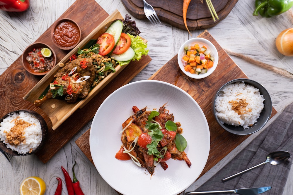 Gäster har tillgång till bland annat kemtvätt/tvättjänster, reception (öppen dygnet runt) och bagageförvaring. På detta hotell erbjuds event- och konferenslokaler såsom konferensrum och 2 mötesrum. Gäster erbjuds flygtransfer tur/retur mot en avgift (tillgänglig på begäran), och avgiftsfri parkering finns på plats. Koppla av på deras fullständiga spa, där du kan njuta av massage och kroppsbehandlingar. Här har du tillgång till 3 utomhuspooler, ett fitnesscenter och hyrcyklar. Boendet har även gratis wi-fi, conciergetjänster och ett picknickområde. Gäster kan snabbt och enkelt ta sig runt med den kostnadsfria bussen som rör sig inom ett område på 5 kilometer. Du kan äta lunch och middag på hotellets restaurang Point Break, som specialiserar sig på internationell gastronomi, eller bara lata dig på rummet med deras rumsservice (under begränsade tider). Koppla av med en drink på boendets bar vid poolen eller en av 3 barer/lounger. Frukostbuffé serveras dagligen mot en avgift från 07.00 till 10.30. I enlighet med lokala bestämmelser måste alla besökare stanna på boendet under det hinduiska nyårets dag av tystnad, Nyepi, under ett dygn (med start kl. 06.00). Nyepi infaller oftast i mars eller april (datumen ändras varje år). In- och utcheckning sker inte under detta dygn. Ngurah Rai Airport (Bali International Airport) är också stängd under Nyepi.Du kommer att ombes att betala följande avgifter på boendet – avgifterna kan inkludera tillämpliga skatter: