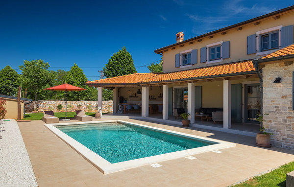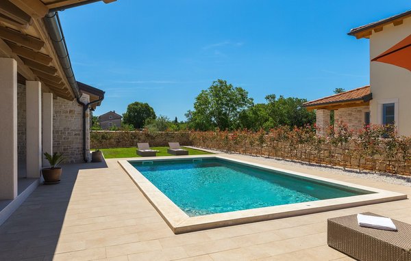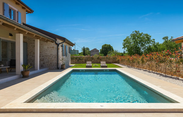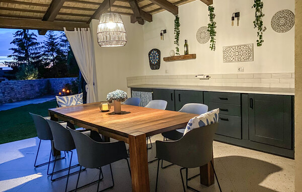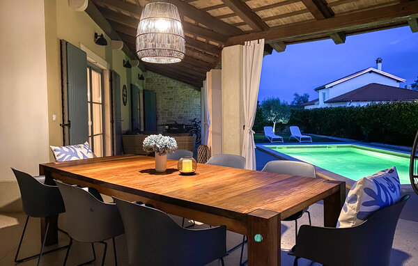 Förverkliga dina drömmar och boka Villa Morosini nu. Villa Morosini ligger i den fridfulla byn Maruzini, där du kan njuta av den istriska naturens charm. Koppla av från vardagens stress och njut av den privata poolen. Villan rymmer upp till sju personer i en trevlig miljö och erbjuder en rymlig utomhusterrass där du kan koppla av med en uppfriskande drink eller ett morgonkaffe med de första solstrålarna. Varje sovrum är fullt utrustat och erbjuder luftkonditionering och TV. Köket är fullt utrustat med alla nödvändiga apparater för att förbereda läckra måltider för din familj. Villan är uppdelad i två våningar. Bottenvåningen har ett sovrum med eget badrum, vardagsrum, kök, matsal och separat toalett. På första våningen finns två sovrum med en-suite badrum. Det finns också 3 cyklar, bordtennis, bordsfotboll och dart. Det är en komplett atmosfär som garanteras för vuxna, barn och seniorer. Om du vill utforska andra platser i Istrien bör du definitivt besöka städerna Rovinj och Pula eller den berömda nationalparken Brijuni. Detta är en underbar plats att tillbringa en semester med familj och vänner. Så packa dina väskor och åk till Istrien för att tillbringa oförglömliga stunder på Villa Morosini.
