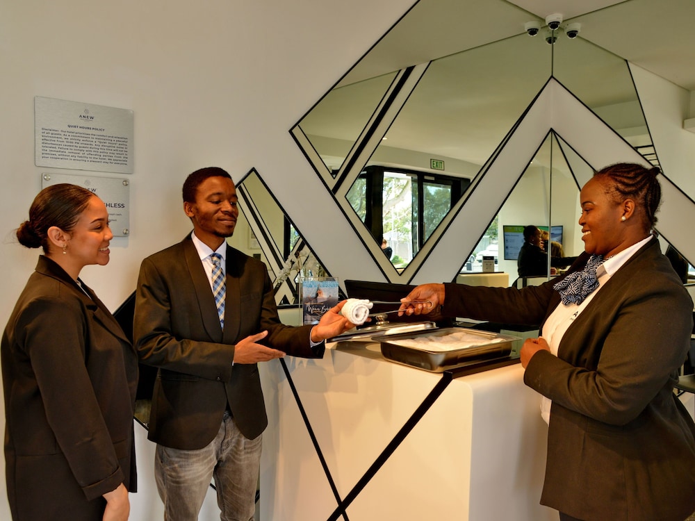 ANEW Hotel Green Point placerar dig i Kapstaden-området Green Point, med 2 minuters körväg till Cape Town Stadium och 9 minuter till Kapstadens universitet. Detta hotell ligger 6,1 km från Camps Bay Beach och 7,5 km från Table Mountain. Känn dig som hemma i ett av de 76 luftkonditionerade rummen med espressobryggare och smart-tv. Gratis wi-fi gör att du kan hålla dig uppkopplad, och satellit-tv erbjuder underhållning. Badrum med dusch, regndusch och hårtorkar. På rummet finns telefon, värdeförvaringsskåp och skrivbord. Avstånd avrundas till närmsta decimal.