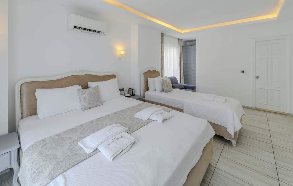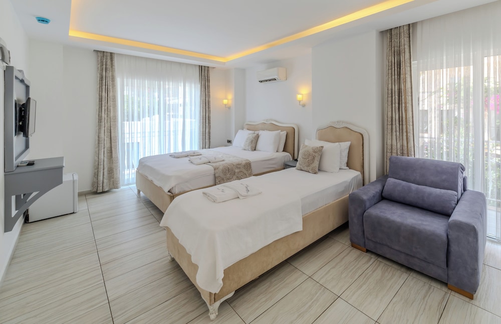 Gäster har tillgång till bland annat expressincheckning, kemtvätt/tvättjänster och reception (öppen dygnet runt). Gäster erbjuds flygtransfer tur/retur mot en avgift (tillgänglig dygnet runt), och avgiftsfri parkering finns på plats. Här erbjuder man säsongsöppen utomhuspool och hyrcyklar. Detta hotell i medelhavsstil har även gratis wi-fi, conciergetjänster och en tv i allmänt utrymme. Du kan äta på hotellets restaurang, eller ta det lugnt på rummet med deras rumsservice. Avsluta dagen med en drink på boendets bar eller bar vid poolen. Här erbjuds en gratis frukostbuffé dagligen mellan 08.00 och 10.30. Turkiska turismministeriet står för den officiella klassificeringen av boenden i Turkiet. Hotel har fått följande klassificering: Boutique Class Detta boende är stängt från 18 december till 1 mars.- Avgift för flygtransfer: TRY 215 per person (enkel resa)