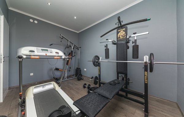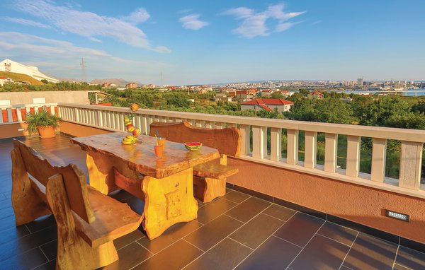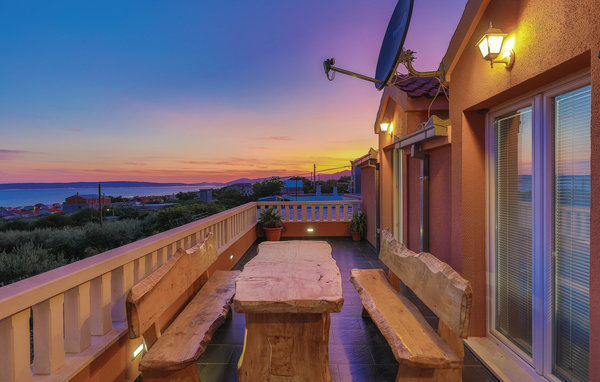 Detta semesterhus är idealiskt för dem som vill njuta av havet och den vackra utsikten. Huset består av två lägenheter, som nås via externa trappor. Den rymliga lägenheten på bottenvåningen består av tre sovrum, två badrum, ett fitnessrum och ett stort vardagsrum med kök och matplats med utsikt över poolen. På första våningen finns också en rymlig terrass med tre sovrum, två badrum, ett kök med matplats och en vacker terrass med panoramautsikt över Katelbukten. Ytterligare komfort erbjuds på den inhägnade tomten med pool och soldäck. Närmaste strand ligger ca 1,5 km bort och du kan nå kulturcentra som Split och Trogir med bil.