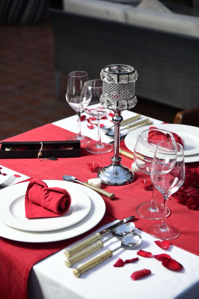 Gäster har tillgång till bland annat business-service, expressutcheckning och gratis dagstidningar i lobbyn. Planerar du ett event i Katmandu? På detta hotell finns det event- och konferensutrymmen på upp till 13 kvadratmeter, däribland konferenscenter och 9 mötesrum. Gäster erbjuds flygtransfer tur/retur mot en avgift (tillgänglig dygnet runt), och avgiftsfri parkering finns på plats. Koppla av på deras fullständiga spa, där du kan passa på att njuta av massage, kroppsbehandlingar och ansiktsbehandlingar. Här har du tillgång till bland annat ett dygnet runt-öppet gym, utomhuspool och utomhustennisbana. Detta hotell i art décostil har även gratis wi-fi, conciergetjänster och en souvenirbutik eller tidningskiosk. Detta hotell har 3 restauranger som serverar bra mat, som till exempel The Chimney. Du kan också välja att lata dig på rummet med rumsservice dygnet runt. Släck törsten med din favoritdrink i boendets bar. Frukostbuffé serveras dagligen mot en avgift från 06.30 till 10.30. LOCALIZE- Avgift för frukostbuffé: NPR 1938 per person (ungefärligt pris)