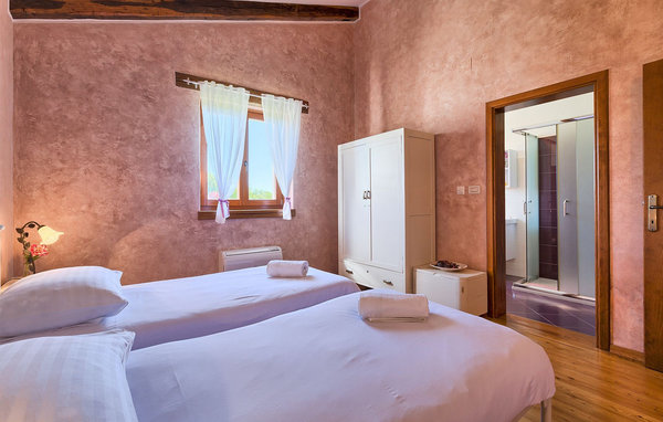 På den täckta terrassen finns en stor grill och brödugn, samt ett matbord där du kan tillbringa kvällen med familjen. Villan erbjuder plats för totalt 6 gäster, sträcker sig över 130 kvadratmeter och alla rum ligger på bottenvåningen. Interiören erbjuder en mysig atmosfär som får dig att känna dig som hemma. I det öppna vardagsrummet och matplatsen hittar du en soffa, en TV och en öppen spis samt ett fullt utrustat kök och ett matbord. Villan har två bekvämt inredda sovrum och varje sovrum har sitt eget badrum. Det ena rummet har en dubbelsäng och det andra har 2 enkelsängar. Boka Villa Fiore och tillbringa en lugn semester omgiven av orörd natur! Om alla vägar i Europa leder till Rom, leder alla vägar i Istrien till Zminj, Istriens centrum och de gamla korsvägarna. Semesterhuset ligger strax utanför Zminj och har ett perfekt läge för att utforska regionen. I byn hittar du alla bekvämligheter, affärer, restauranger etc. Själva semesterhuset ligger avskilt i en avkopplande miljö och är perfekt om du värdesätter avskildhet, lugn och ro. Du kan dock vara så högljudd som du vill utan att någon tar illa upp. Kusten med sina stora turistcentra ligger bara en kort bilresa bort, liksom Pulas flygplats. Istrien har goda kommunikationer och ett utmärkt vägnät som inte är överbelastat.