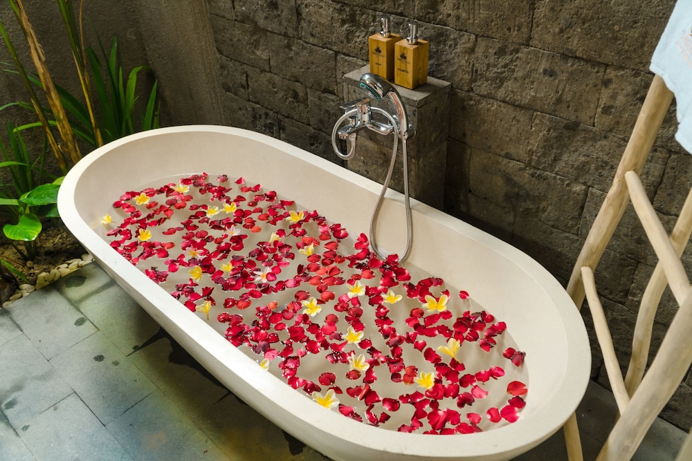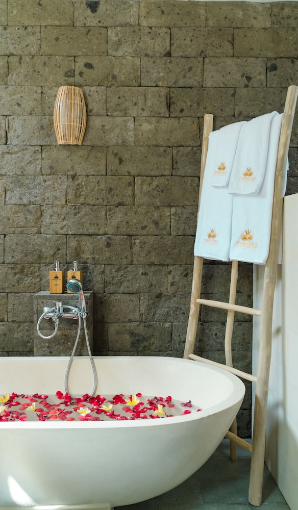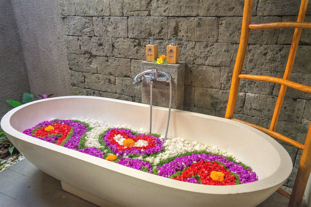I Tegallalang ligger Three Gold Luxury Private Villa, en tio minuters bilfärd från både Gunung Kawi Temple och Tegallalangs risterrasser. Detta bed and breakfast ligger 9,9 km från Ubuds traditionella konstmarknad och 10,1 km från Ubuds kungliga palats. Känn dig som hemma i ett av de 5 luftkonditionerade rummen med privata pooler och privata bubbelpooler inomhus. Rummen har privata balkonger/terrasser. Gratis wi-fi gör att du kan hålla dig uppkopplad, och en LED-tv med kabelkanaler erbjuder all underhållning du behöver. Badrummen har badkar och dusch, djupa badkar och gratis toalettartiklar. Avstånd avrundas till närmsta decimal.