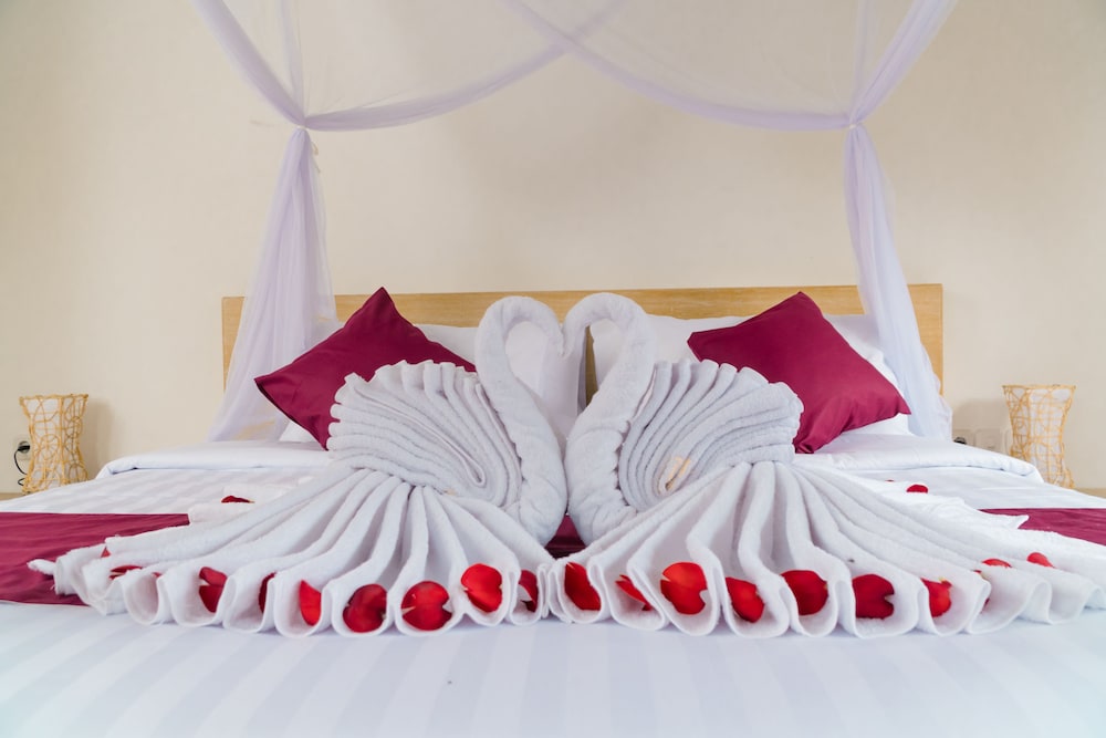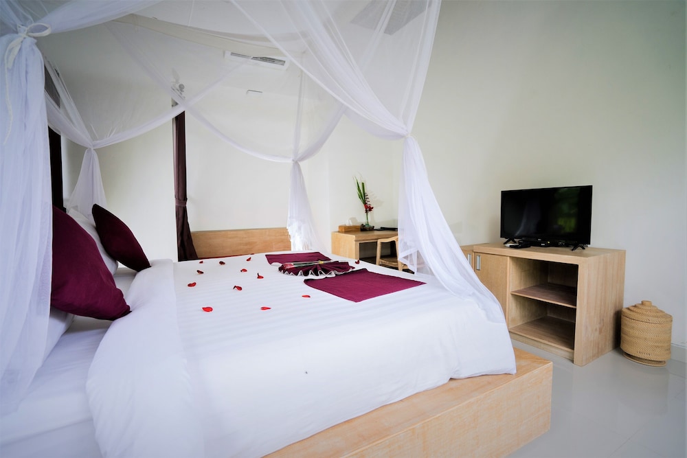 Gäster har tillgång till bland annat expressincheckning, reception (öppen dygnet runt) och bagageförvaring. Gäster erbjuds flygtransfer tur/retur mot en avgift (tillgänglig dygnet runt), och avgiftsfri parkering finns på plats. Här får du tillgång tilll utomhuspool och kan njuta av utsikten från terrassen och trädgården. Detta bed and breakfast har även gratis wi-fi och hjälp med bokning av biljetter och guidade turer. Boendets gäster kan avnjuta en middag på Puri Shanti eller ta det lugnt på rummet med rumsservice (under begränsade tider). Släck törsten med din favoritdrink i boendets bar. I enlighet med lokala bestämmelser måste alla besökare stanna på boendet under det hinduiska nyårets dag av tystnad, Nyepi, under ett dygn (med start kl. 06.00). Nyepi infaller oftast i mars eller april (datumen ändras varje år). In- och utcheckning sker inte under detta dygn. Ngurah Rai Airport (Bali International Airport) är också stängd under Nyepi.Du kommer att ombes att betala följande avgifter på boendet – avgifterna kan inkludera tillämpliga skatter: