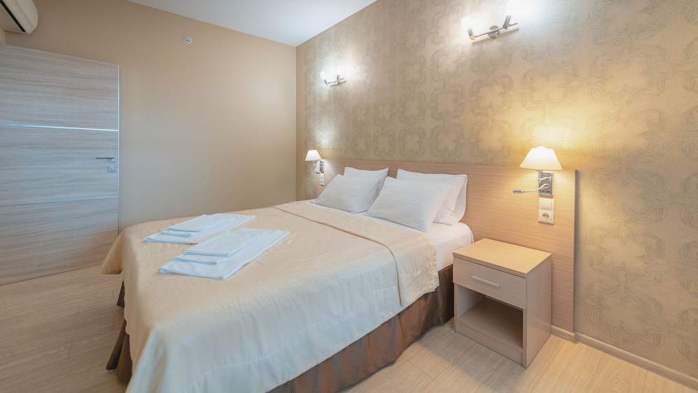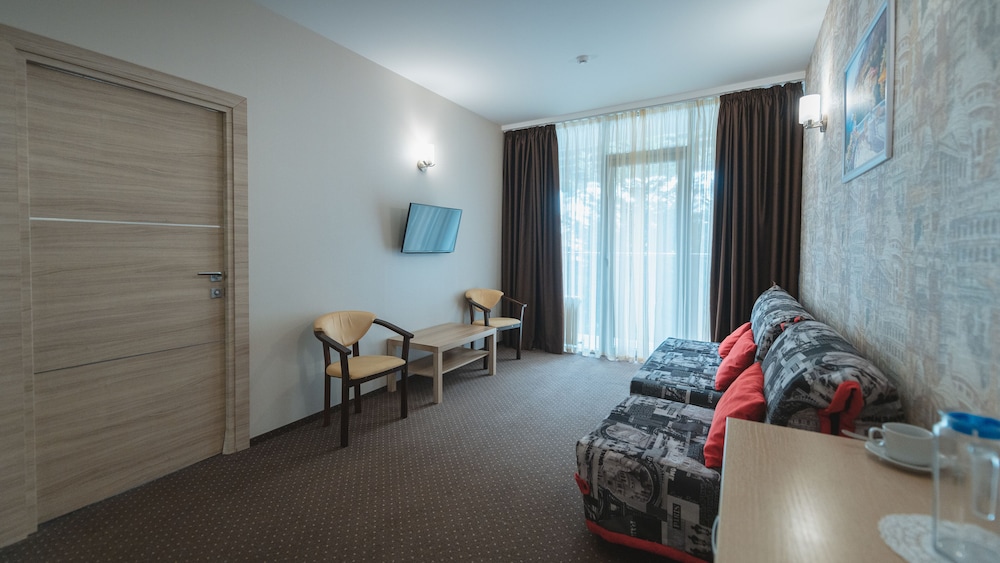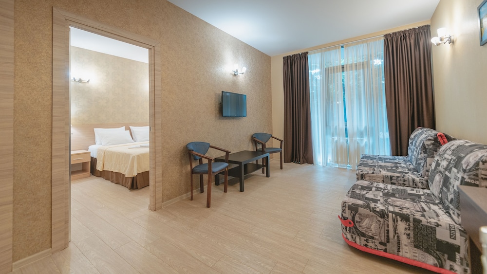 Khosta Hotel ligger i Sotji (i området Khosta), tio minuter med bil från både Kaukasus statliga naturbiosfärreservat och A.A.S. Tree Plastique konstgalleri. Detta hotell vid stranden ligger 5,9 km från Adler Beach och 7,8 km från Sochi Discovery World Aquarium. Känn dig som hemma i ett av de 31 luftkonditionerade rummen med kylskåp och platt-tv. Gratis wi-fi gör att du kan hålla dig uppkopplad, och kabel-tv erbjuder underhållning. Privat badrum med dusch, gratis toalettartiklar och hårtorkar. På rummet finns telefon, värdeförvaringsskåp och skrivbord. Avstånd avrundas till närmsta decimal.