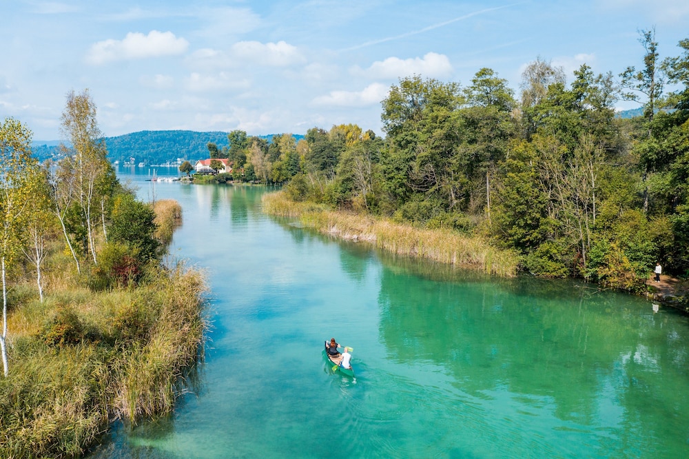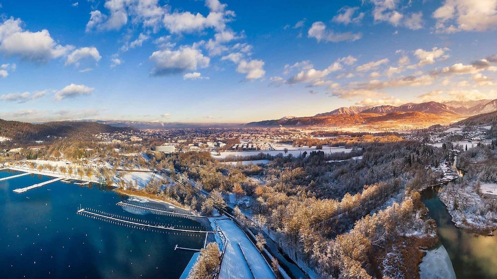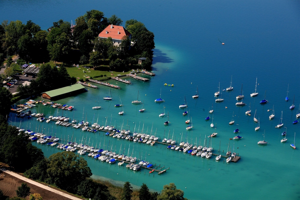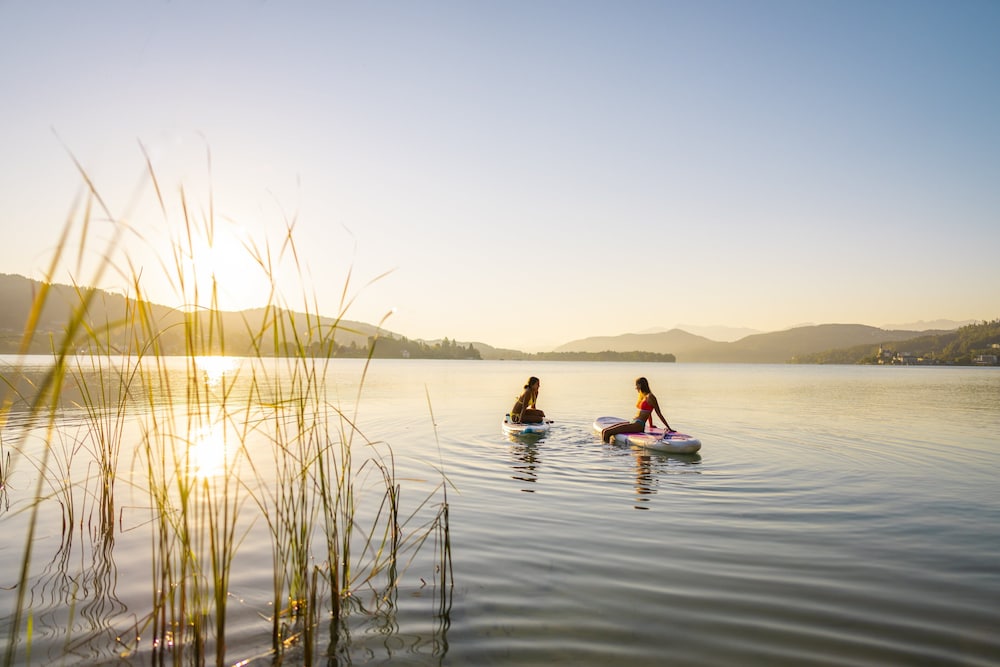 Seepark Wörthersee Resort ligger i Klagenfurt am Wörthersee vid sjön, ett stenkast från Universität Klagenfurt och 7 minuters promenad från Minimundus. Detta hotell i lyxstil ligger 0,8 km från Reptilienzoo Happ och 1,8 km från Strandbad Klagenfurt. Känn dig som hemma i ett av de 142 rummen med platt-tv. Med gratis fast internetanslutning och wi-fi håller du dig uppkopplad, medan satellitkanaler står för underhållningen. Badrum med dusch, gratis toalettartiklar och hårtorkar. På rummet finns telefon, laptopanpassade värdeförvaringsskåp och skrivbord. Avstånd avrundas till närmsta decimal.