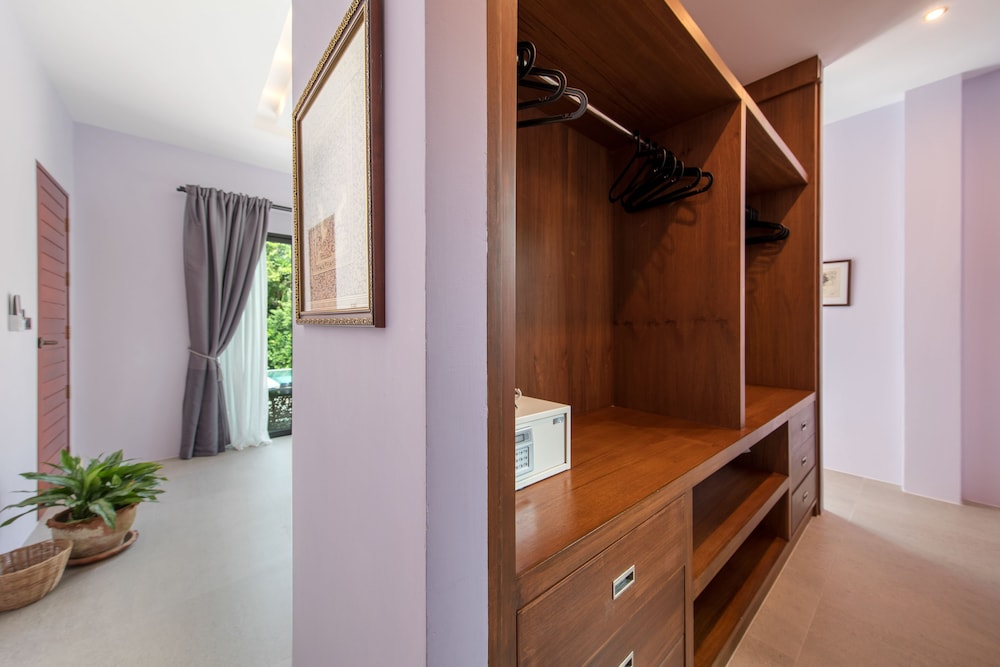 I Koh Samui ligger denna villa på landet, en fem minuters bilfärd från Laem Sor Beach och Laem Sor Pagoda. Denna villa ligger 1,4 km från Thong Kut Beach och 7,5 km från Namuang Waterfall 1. Skäm bort dig själv och bo i den här individuellt inredda villan, som har privat pool. Köket är utrustat med en spishäll, en mikrovågsugn och en espressobryggare. Fast internetanslutning och wi-fi är gratis, och en dvd-spelare och digital-tv erbjuder underhållning. Bekvämligheter som ingår är laptopanpassade värdeförvaringsskåp och ett separat loungeområde. Städning sker dagligen. Avstånd avrundas till närmsta decimal.