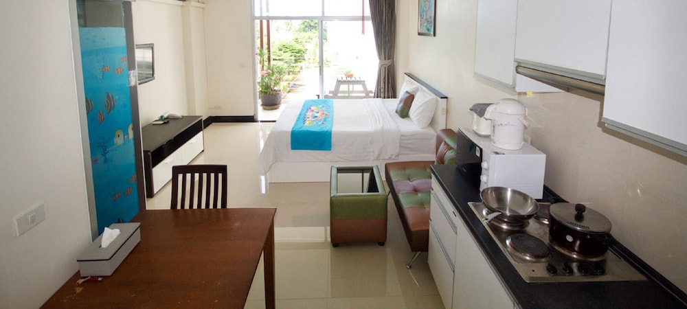 At Sea Condo ligger i Krabi (i området Nong Thale), 4 minuter med bil från Khlong Muang Beach och 8 minuter från Tubkaek Beach. Denna lägenhet ligger 10,6 km från Ao Nang och 8,1 km från Nopparat Thara Beach. Känn dig som hemma i ett av de 8 luftkonditionerade rummen som har pentry med kylskåp och spishäll. Rummen har privata balkonger. Gratis wi-fi gör att du kan hålla dig uppkopplad, och en platt-tv med kabelkanaler erbjuder all underhållning du behöver. På rummet finns värdeförvaringsskåp och mikrovågsugnar. Städning erbjuds på begäran. Avstånd avrundas till närmsta decimal.