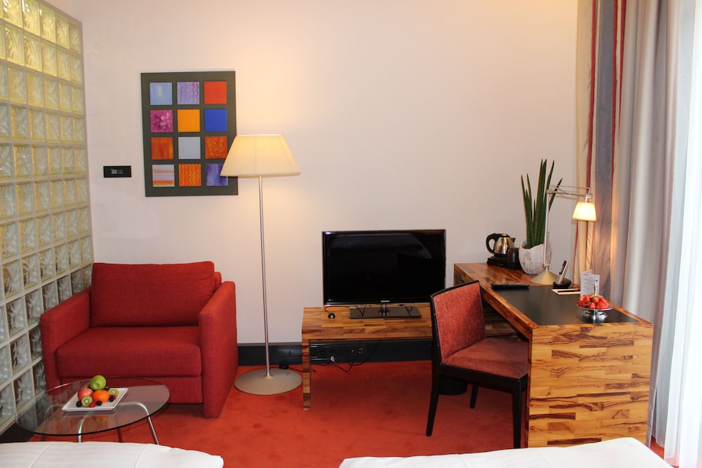 Gäster har tillgång till bland annat business-service dygnet runt, expressutcheckning och kemtvätt/tvättjänster. Planerar du ett event i Berlin? På detta hotell finns det event- och konferensutrymmen på upp till 1100 kvadratmeter, däribland konferensrum och 10 mötesrum. Gäster har mot en avgift tillgång till flygtransfer tur/retur (tillgänglig dygnet runt) och hämtning vid järnvägsstationen. Du får tillgång till bland annat bastu, fitnesscenter och hyrcyklar. Detta hotell har även gratis wi-fi, conciergetjänster och en tv i allmänt utrymme. Du kan äta på hotellets restaurang, eller ta det lugnt på rummet med deras rumsservice (under begränsade tider). Avsluta dagen med en drink på boendets bar. Frukostbuffé serveras dagligen mot en avgift från 06.30 till 10.30. Hotelstars Union tilldelar officiella stjärnklassificeringar för boenden i Tyskland. Detta boende har klassificerats som 4 stars.Du kommer att ombes att betala följande avgifter på boendet – avgifterna kan inkludera tillämpliga skatter: