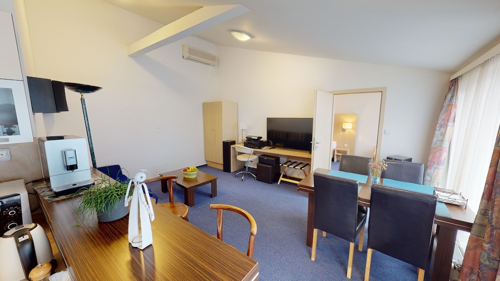 Gäster har tillgång till bland annat expressincheckning, expressutcheckning och kemtvätt/tvättjänster. Gäster erbjuds flygtransfer tur/retur mot en avgift (tillgänglig dygnet runt), och parkering (avgift tillkommer) finns på plats. Här finns bland annat tillgång till utomhustennisbana och hyrcyklar. Boendet har även gratis wi-fi, en frisersalong och hjälp med bokning av biljetter och guidade turer. Apartments Kroměříž har en snackbar/deli där gäster kan köpa nåt gott att äta. Släck törsten med din favoritdrink i boendets bar. Frukostbuffé serveras dagligen mot en avgift från 08.00 till 10.00.- Avgift för frukostbuffé: EUR 11 för vuxna och EUR 7 för barn