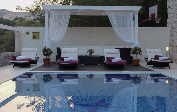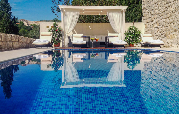 Den magnifika Villa Gorica välkomnar dig till en idyllisk egendom från 1500-talet och kommer att glädja dig med en lyckad blandning av historisk charm och modern komfort. Den rymliga interiören, dekorerad med antika möbler, erbjuder gott om utrymme för en större familj eller grupp vänner och inbjuder dig att umgås i en mysig atmosfär. Duka upp läckra måltider tillsammans, prata över längre måltider, träffas för ett glas vin i det mysiga vardagsrummet eller fördjupa dig i din semesterläsning i en lugn tillflyktsort.